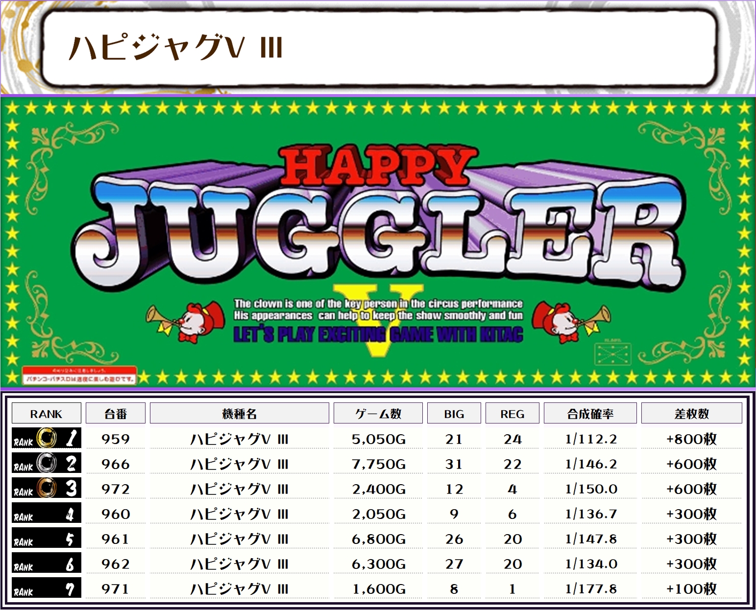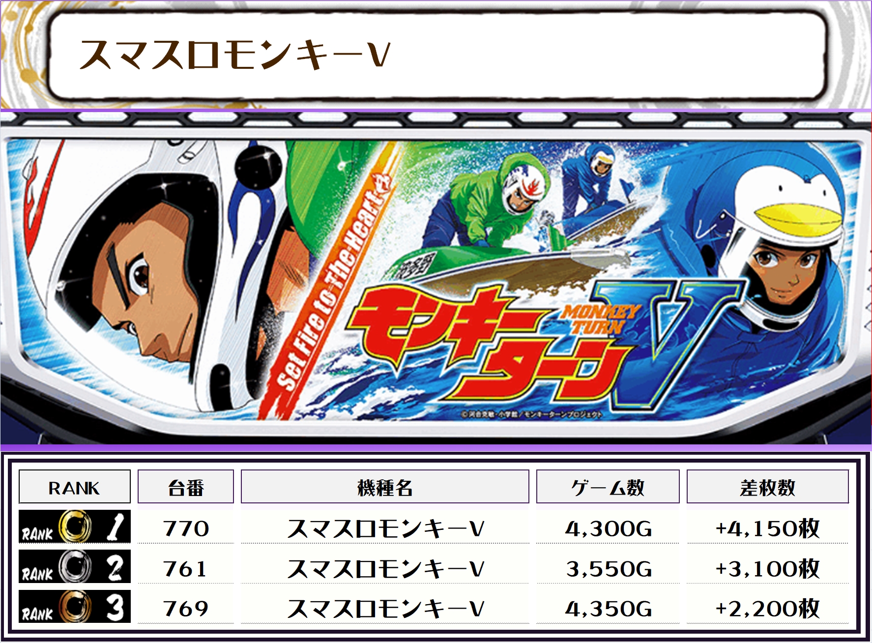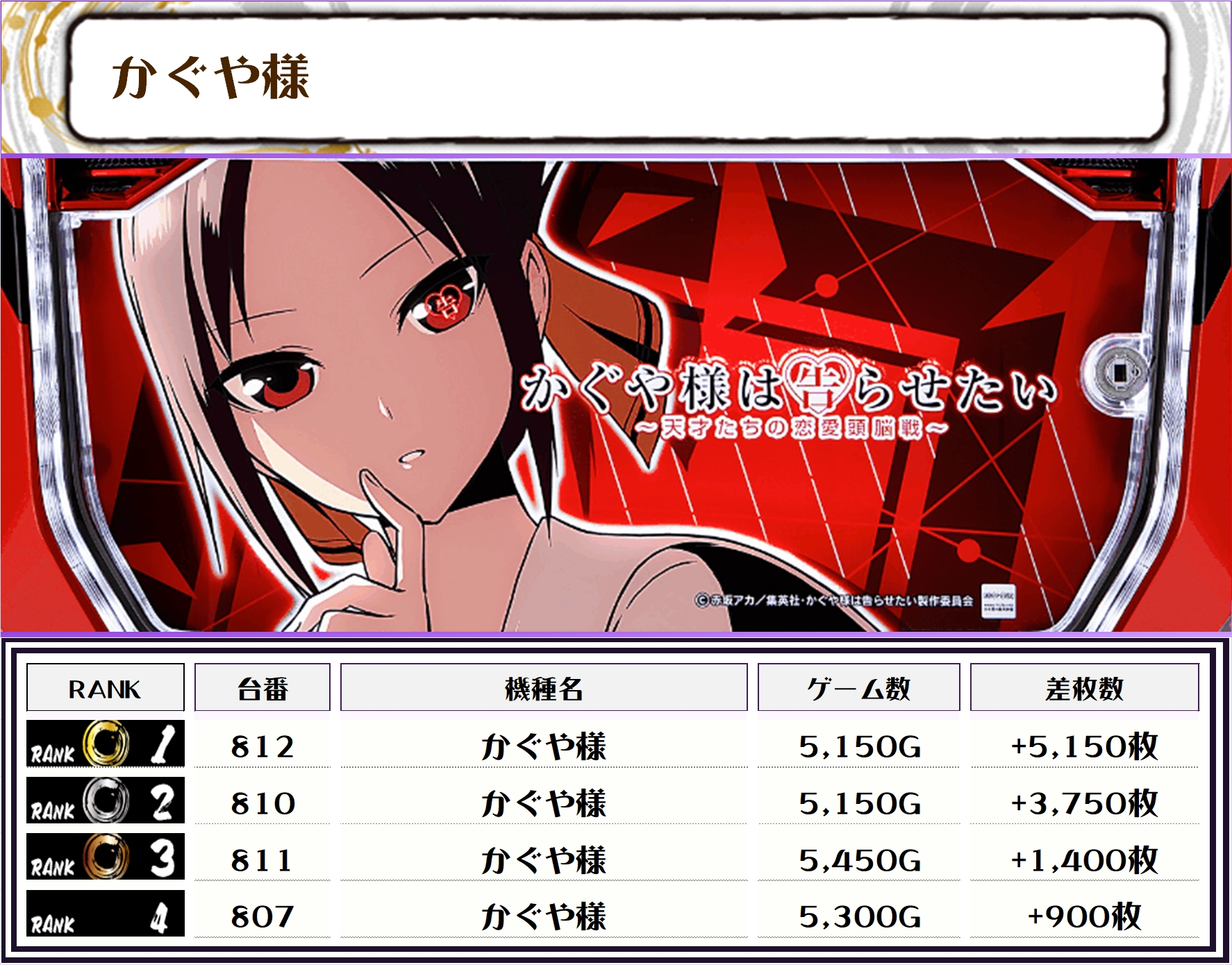 さらに、スマスロモンキーV・かぐや様・からくりサーカス・ハピジャグV IIIでは優秀台の並びがあったようです🔍