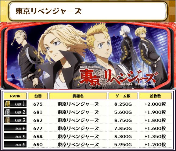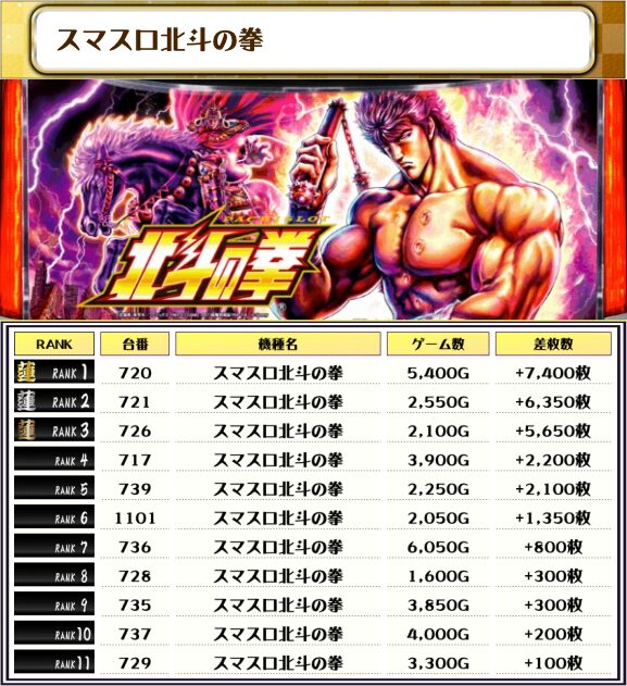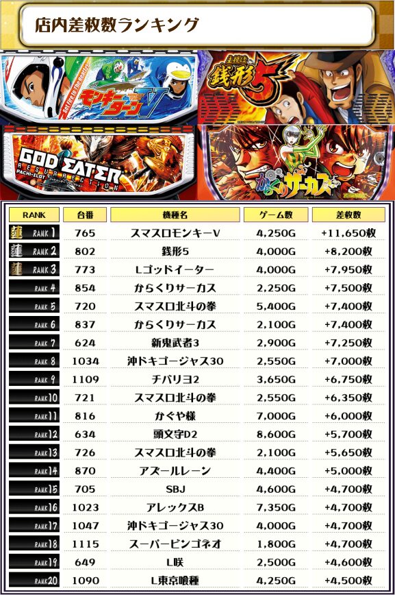 続いては【店内全台の差枚ランキング】をご覧ください!