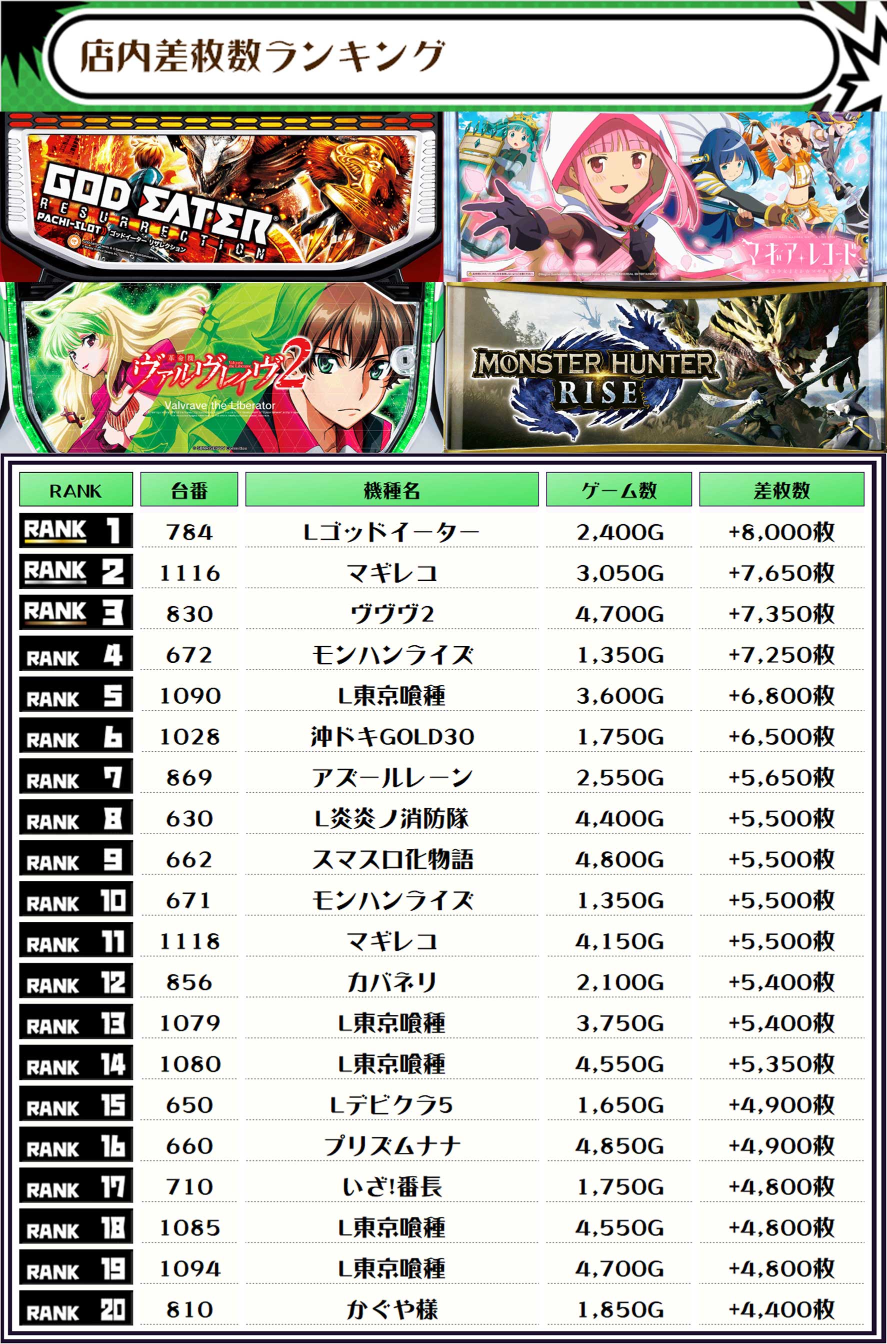 そして、全体の差枚ランキングです🌟