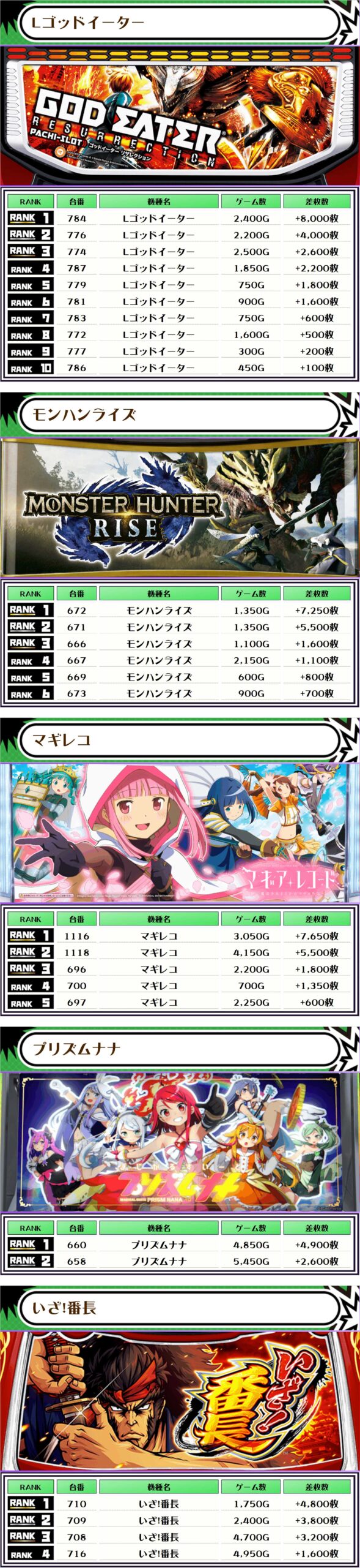 それでは、この日の【機種別差枚ランキング】を見ていきましょう❗️