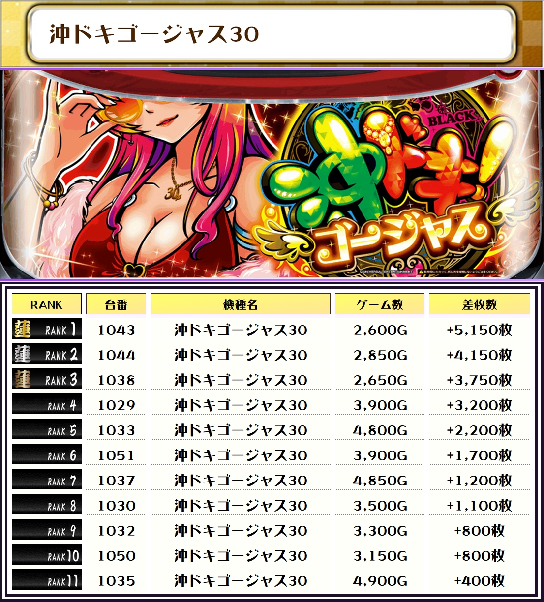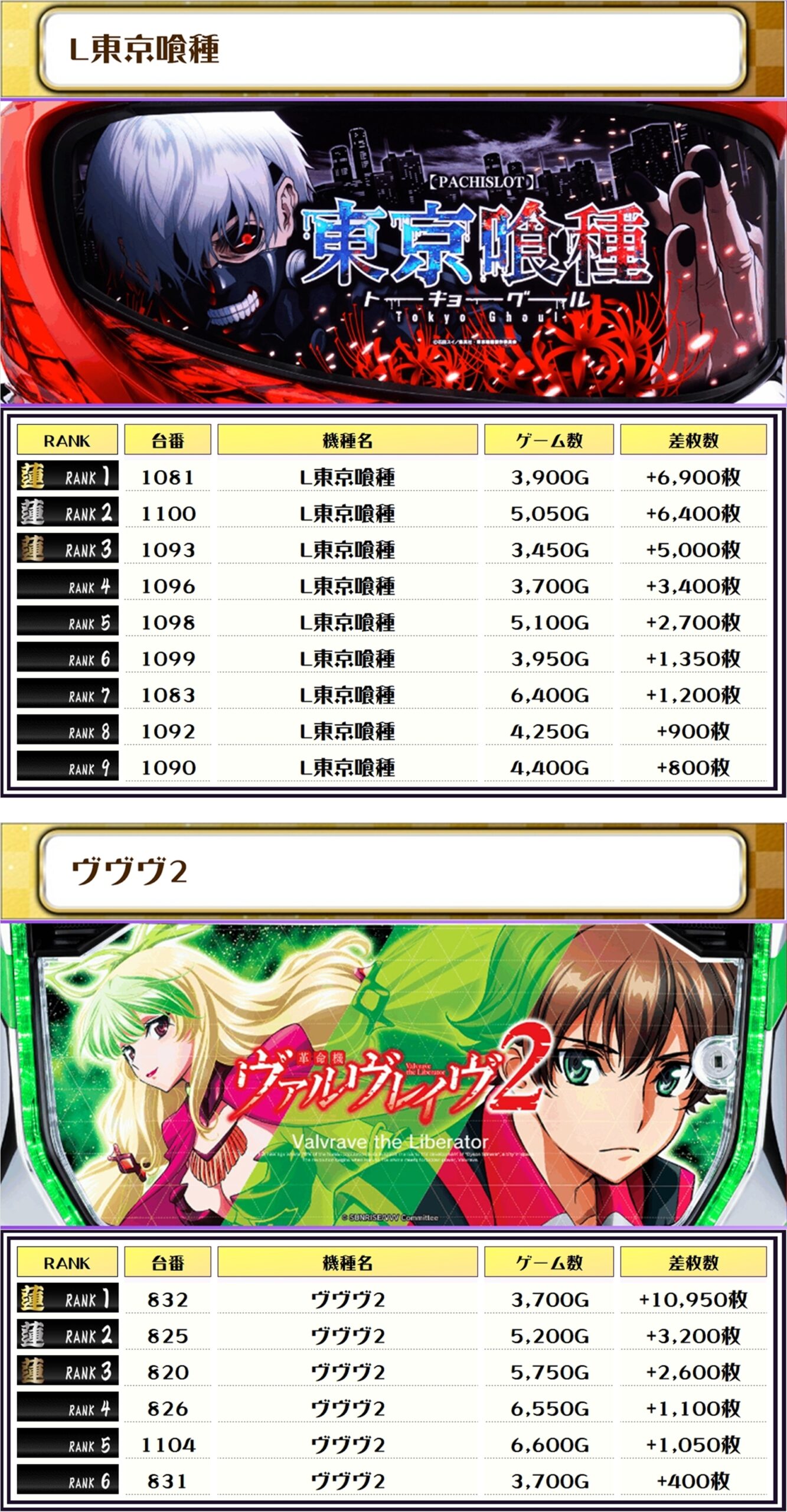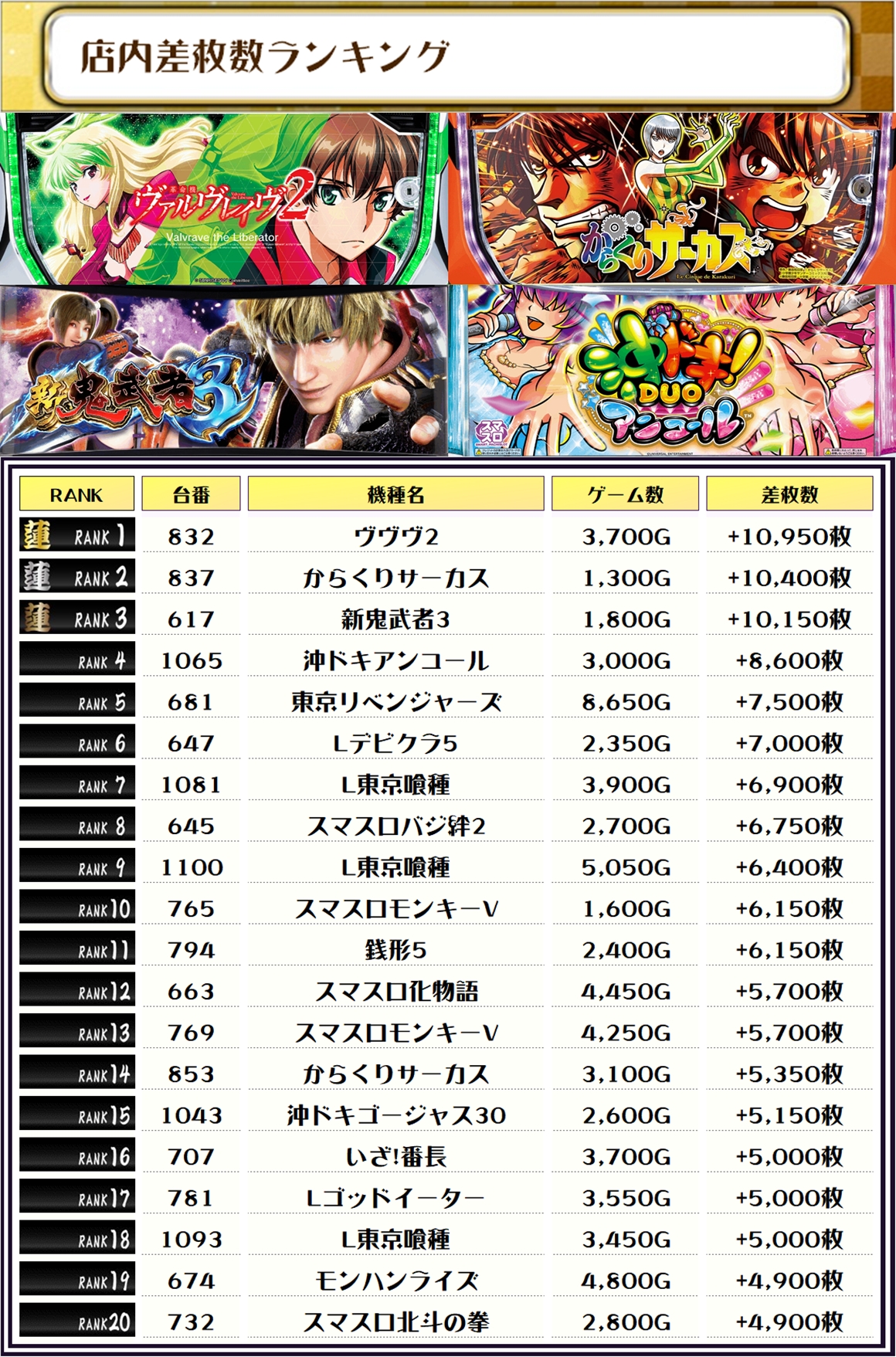 続いては【店内全台の差枚ランキング】をご覧ください!