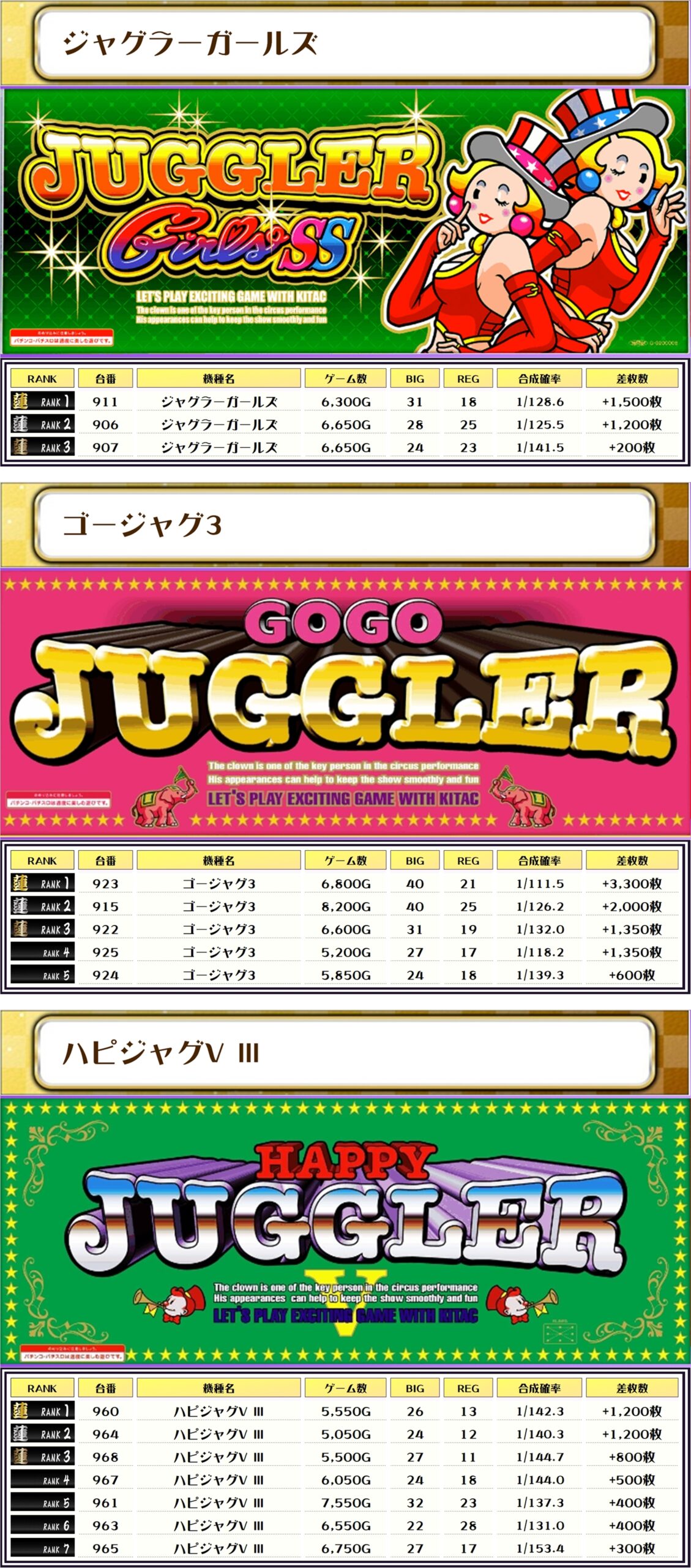 今回ピックアップした機種は稼働も勝率も高く、優秀台が多く見られました👀🎉🎉🎉