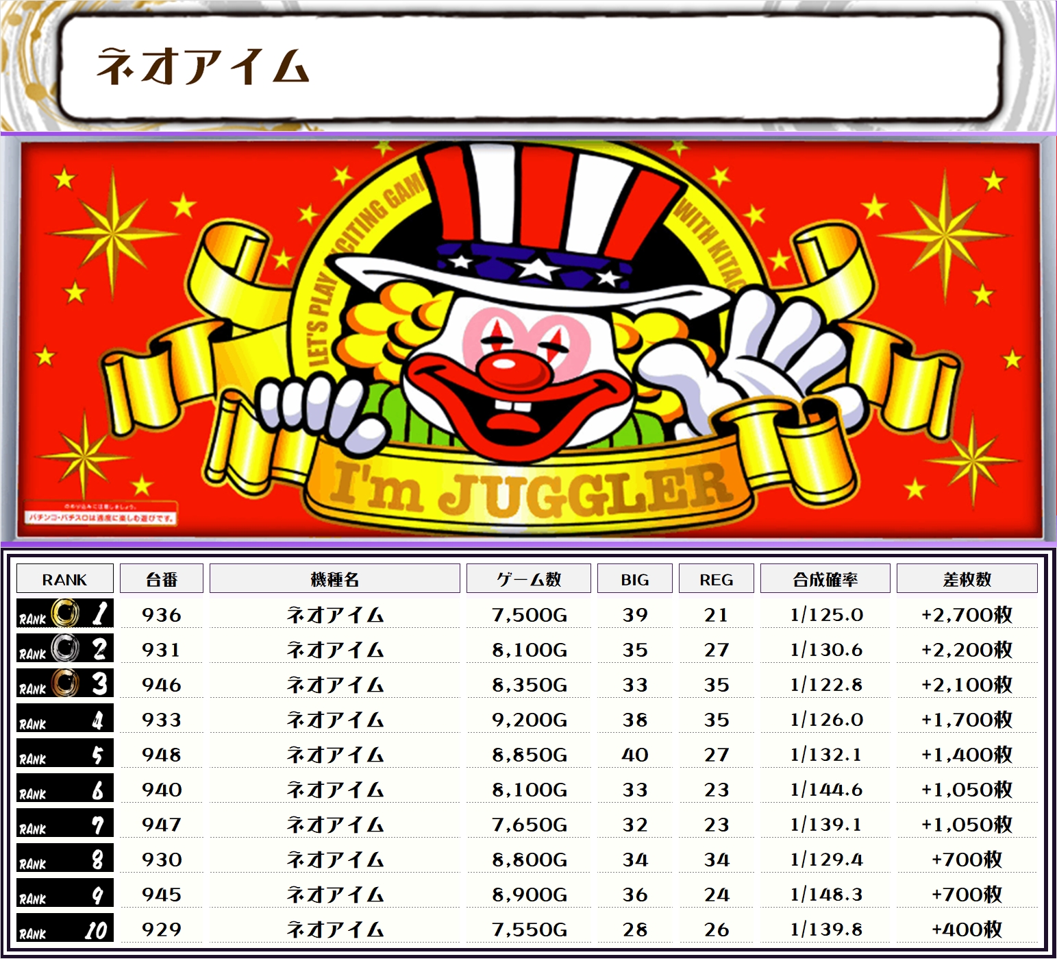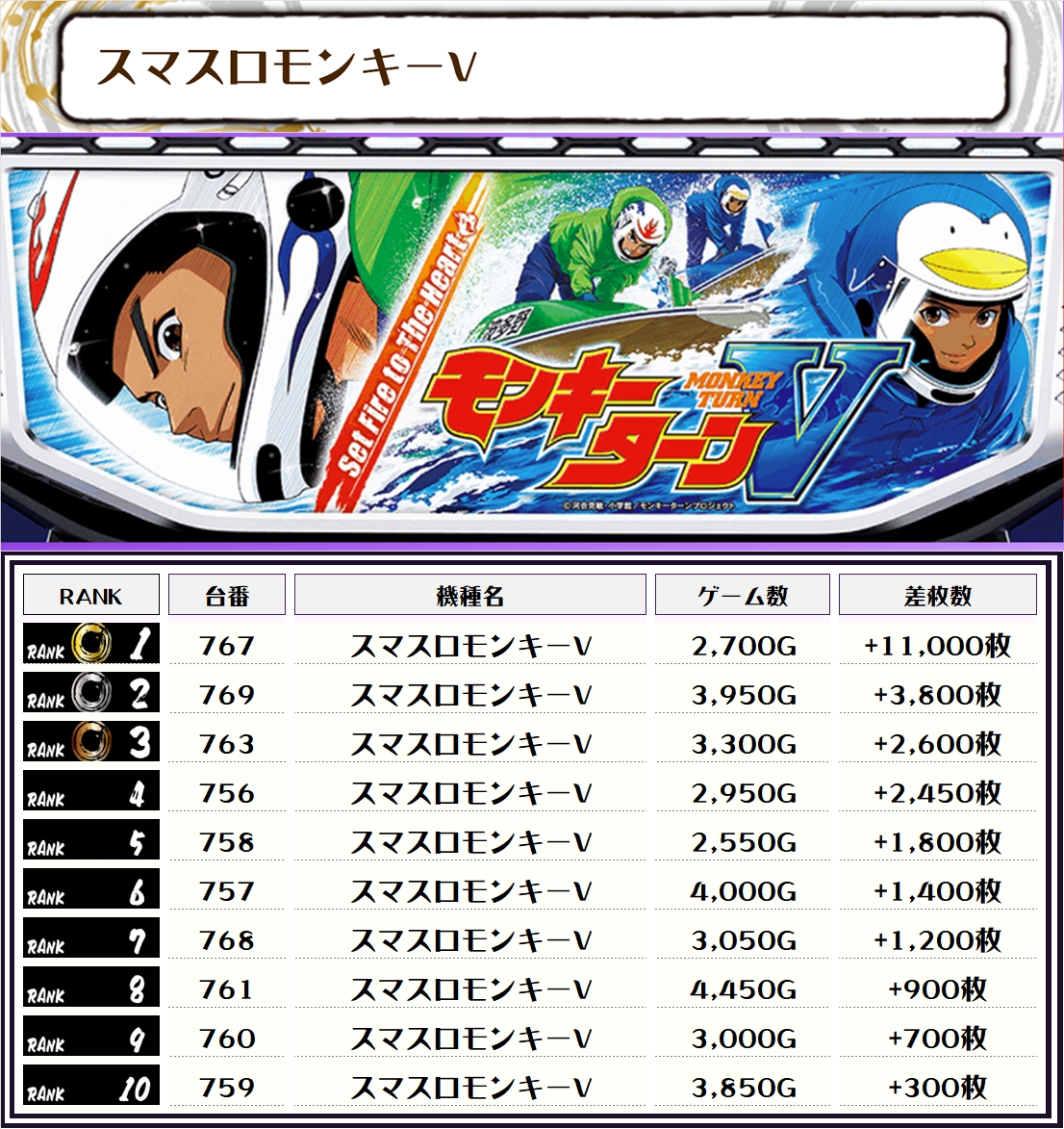 そして今回のランキングは、全て6000枚オーバーで埋め尽くされる…という非常にハイレベルな結果に👍