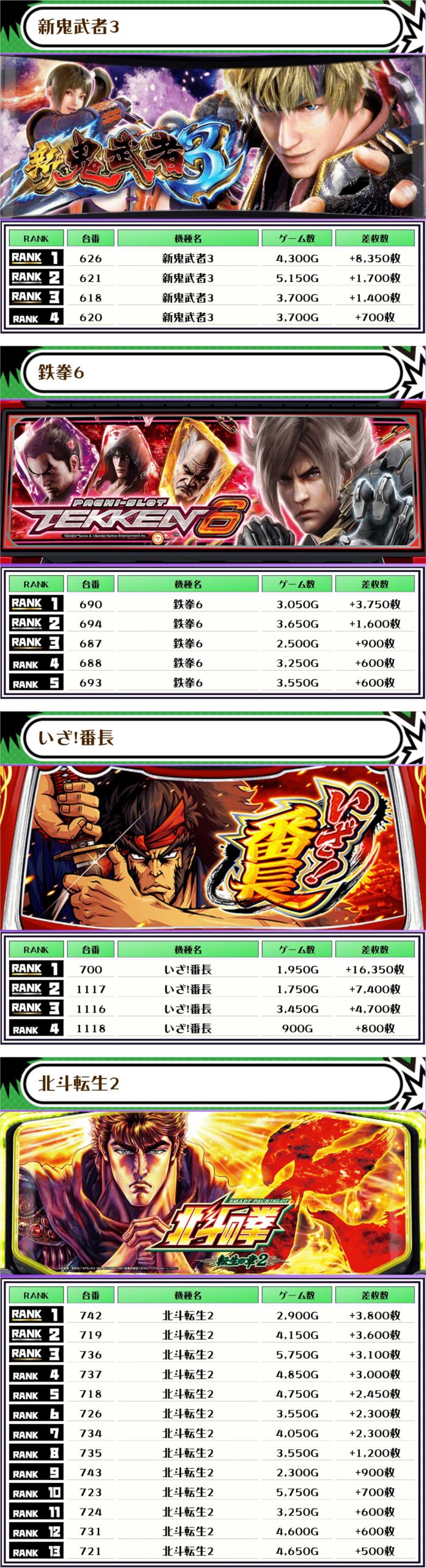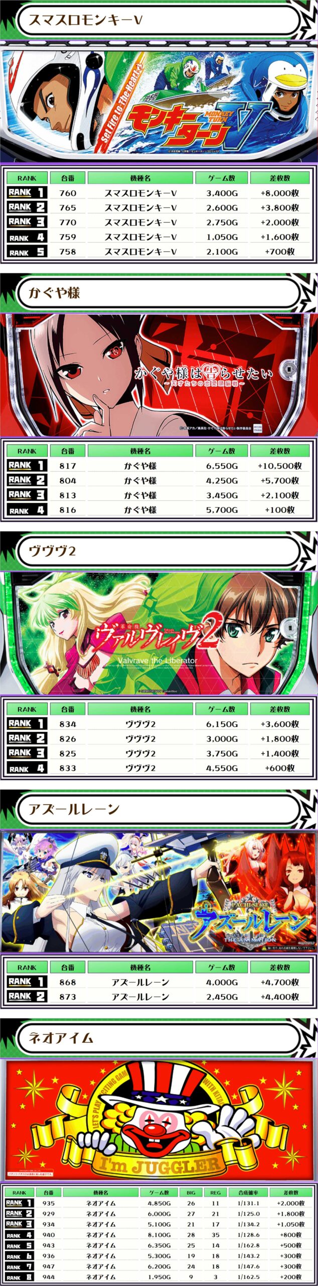 ピックアップしたのは稼働が高くて、優秀台が多かったと思われる機種になります👍