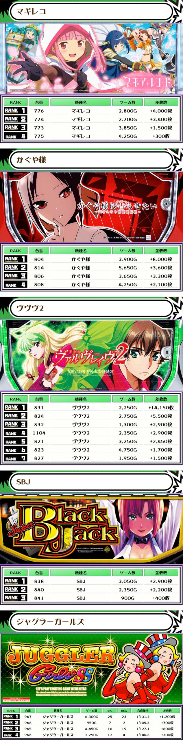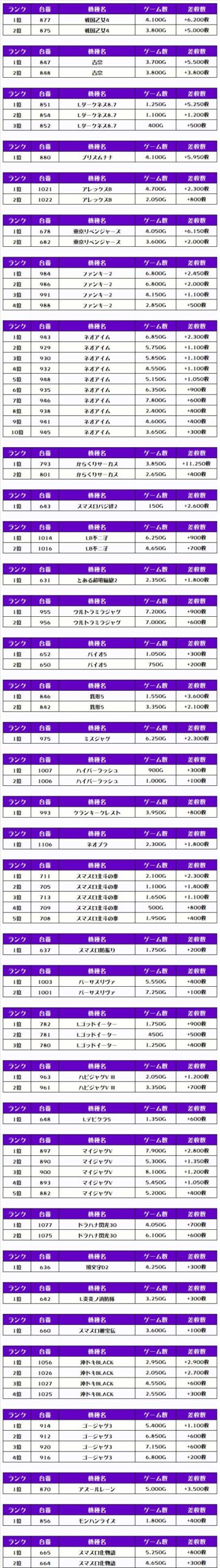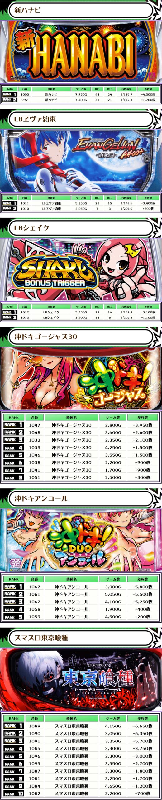 なお、ピックアップしたのは稼働が高くて、優秀台が多かったと思われる機種になります👍