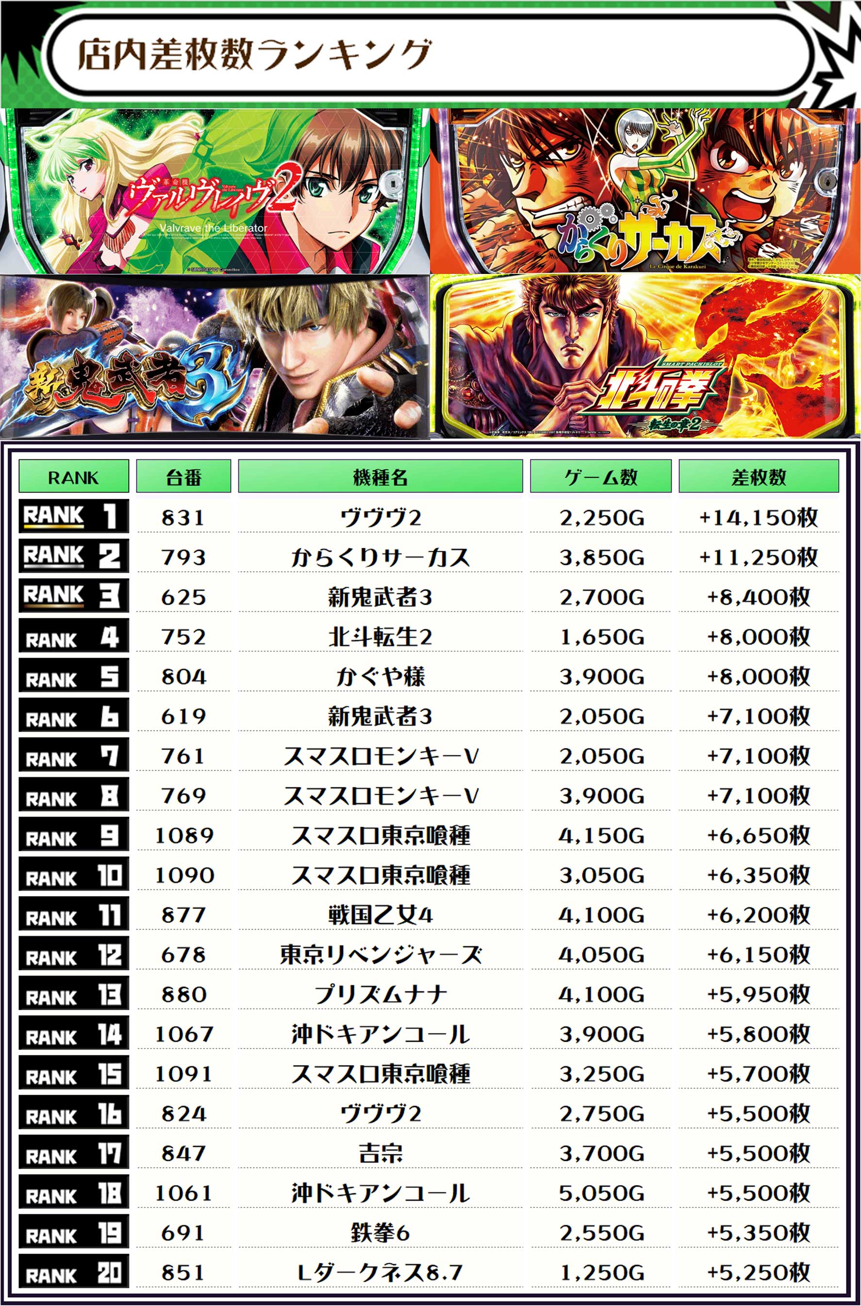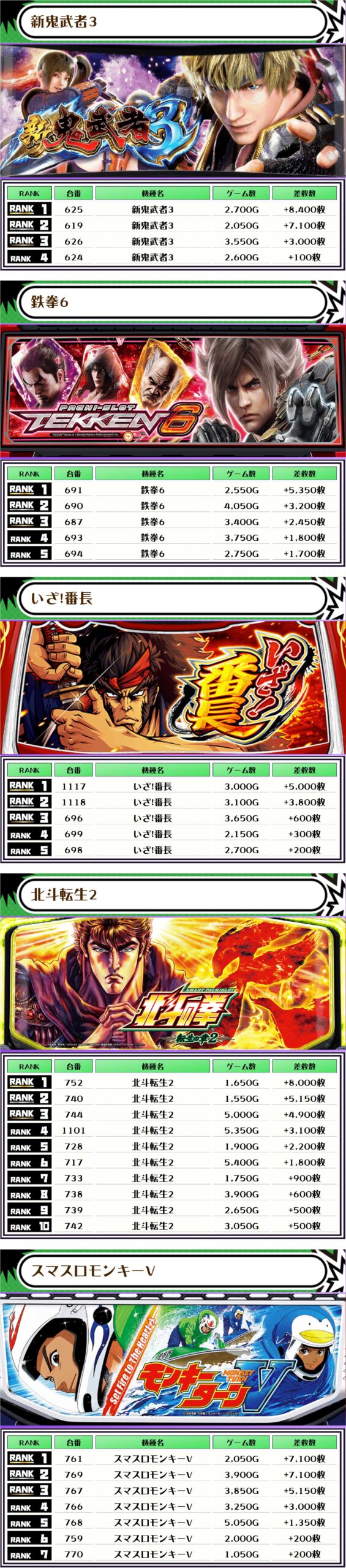 2位には【からくりサーカス・793番台】の+11,250枚、そして3位には【新鬼武者3・625番台】の+8,400枚がランクインっ🏆🏆🏆