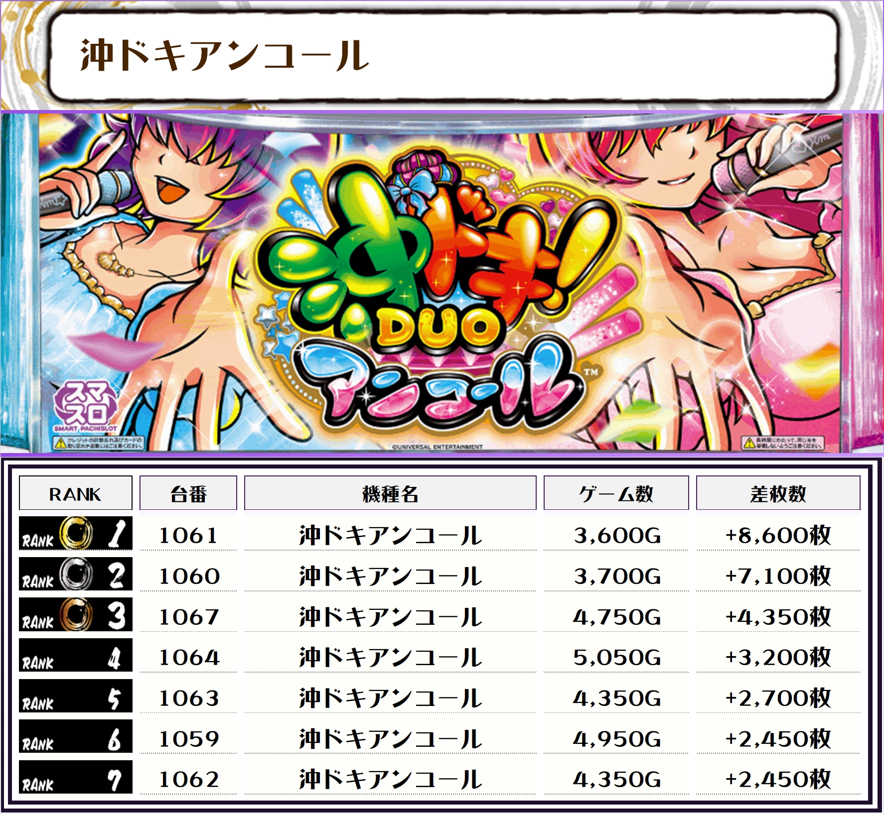 前回は万枚突破した台はなかったものの、ベスト20まで全て5000枚オーバーと素晴らしい結果を見せてくれました👏 今回も充分期待できるのではないでしょうか!!