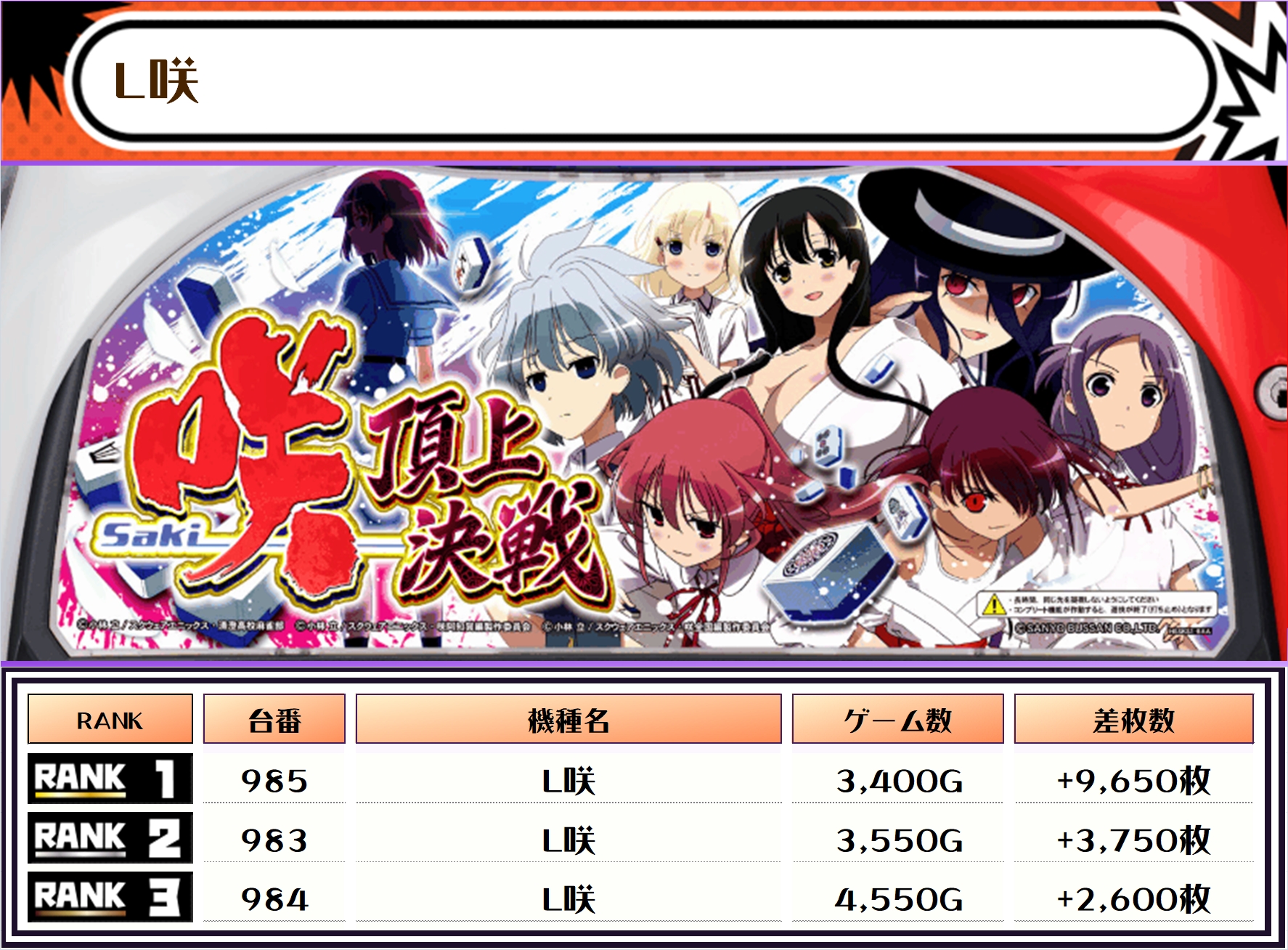 この日、全体の差枚トップに輝いたのは【L咲・985番台】で+9,650枚🔥