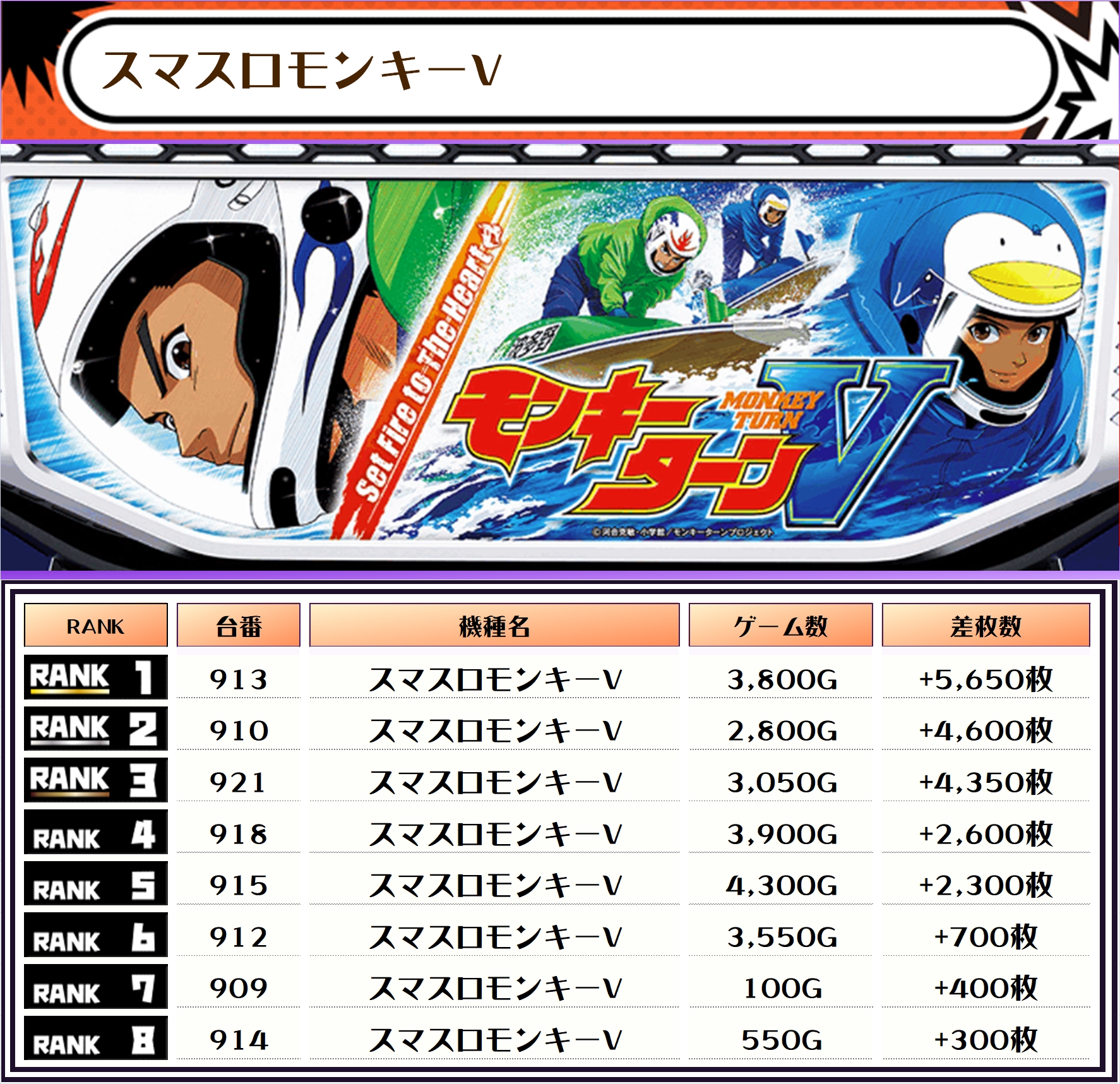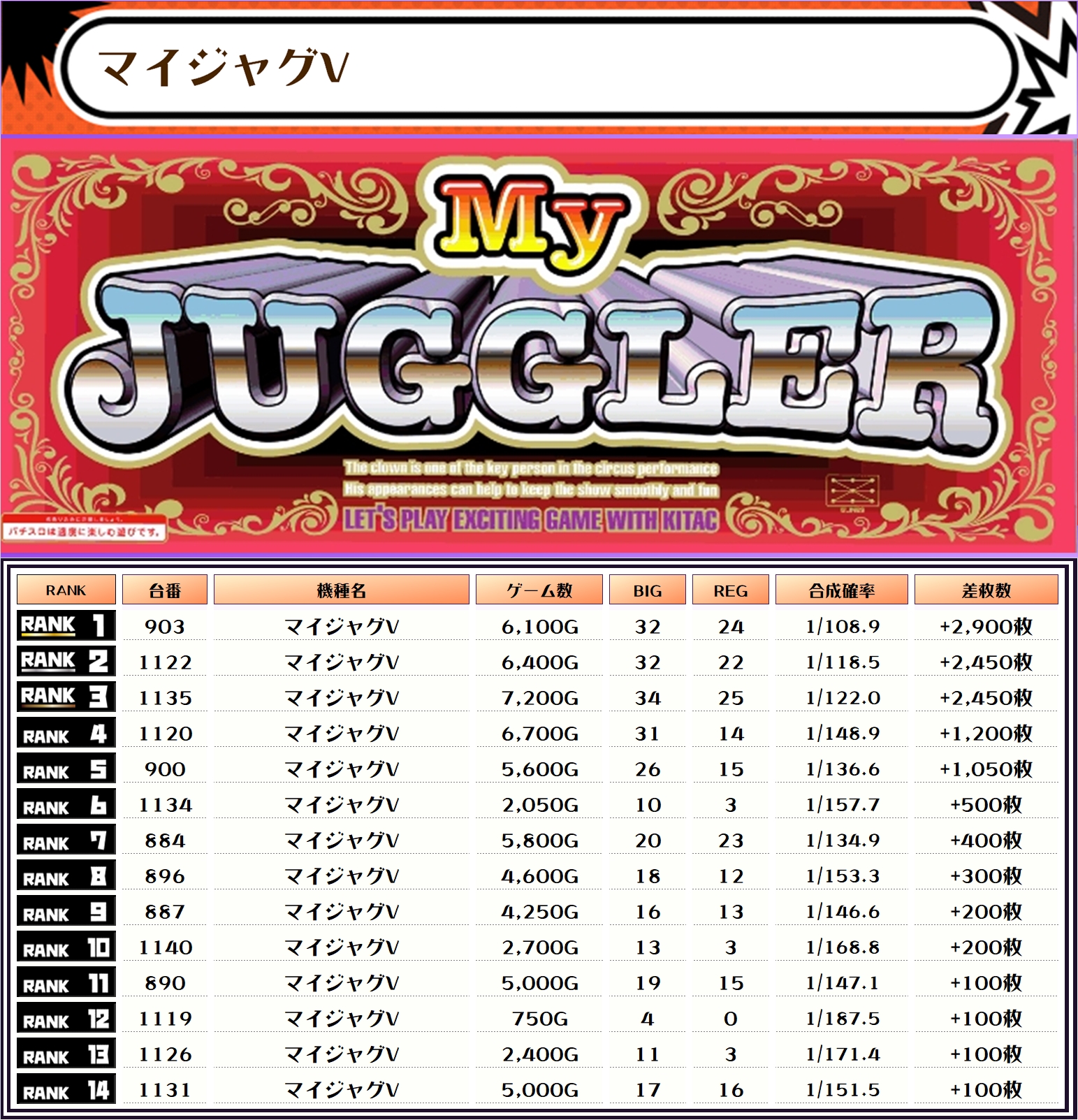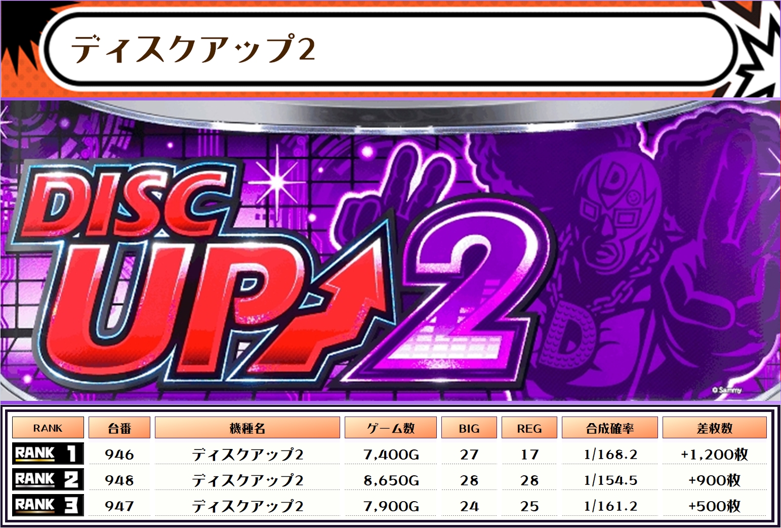 また、この日の注目台差枚ランキングがこちら❗️