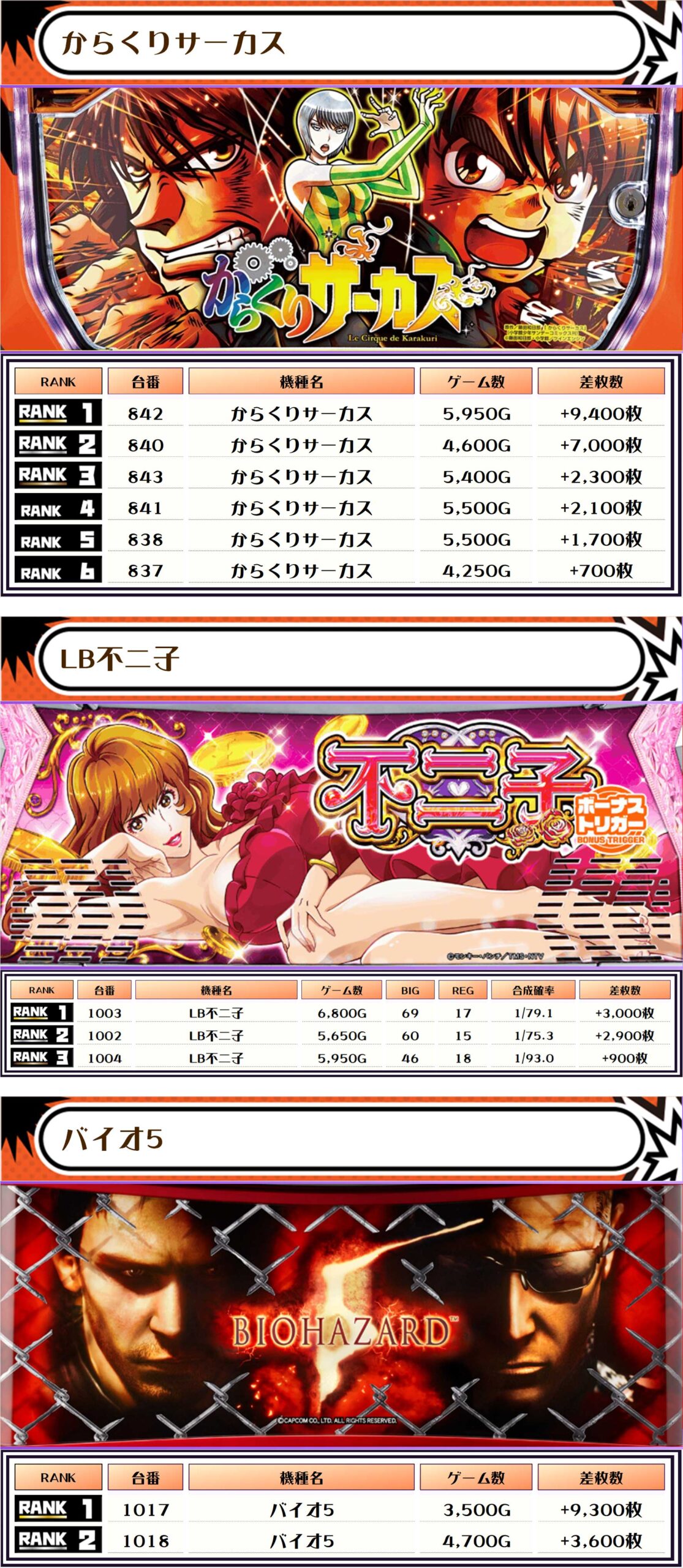 また、この日の店内差枚数ランキングがこちら❗️