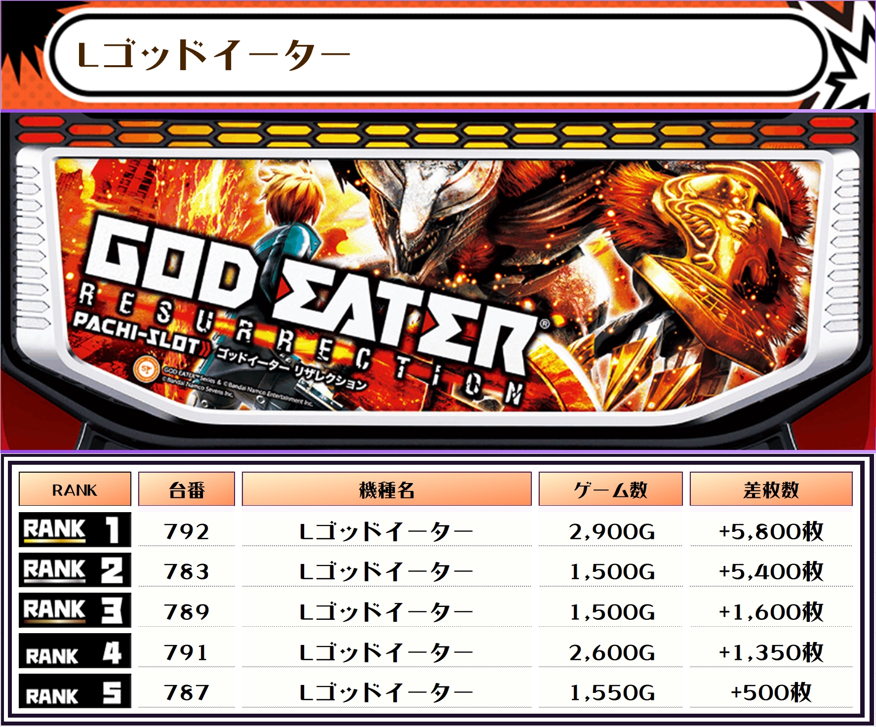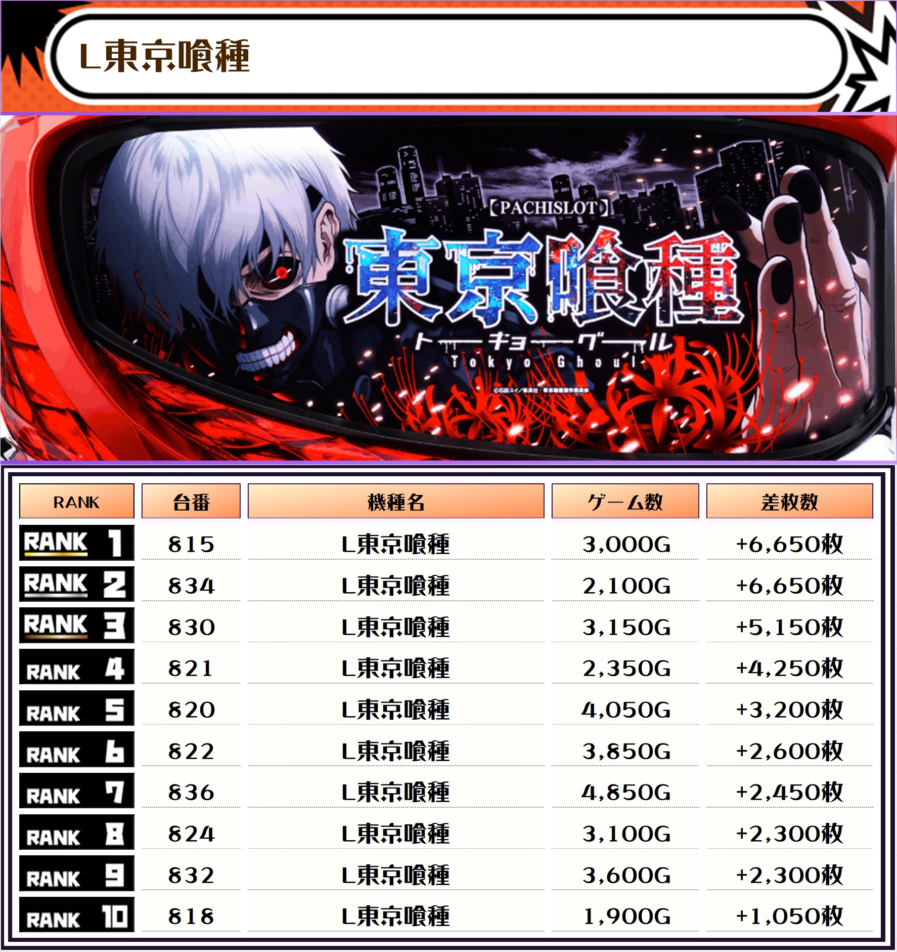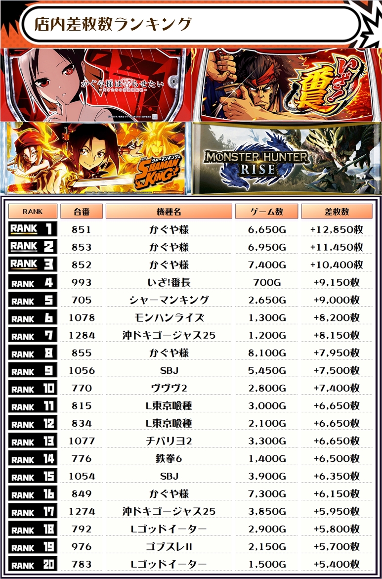 また、この日の店内差枚数ランキングがこちら❗️