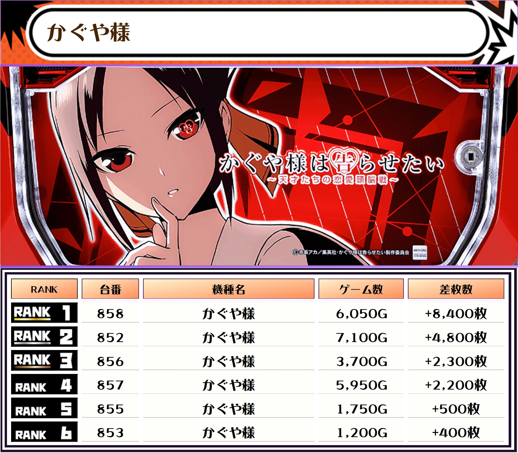 前回4/2開催時は、かぐや様から万枚突破が3台も飛び出し盛り上がりました👑👑👑 今回はどんな光景を見せてくれるのか…楽しみですね✍