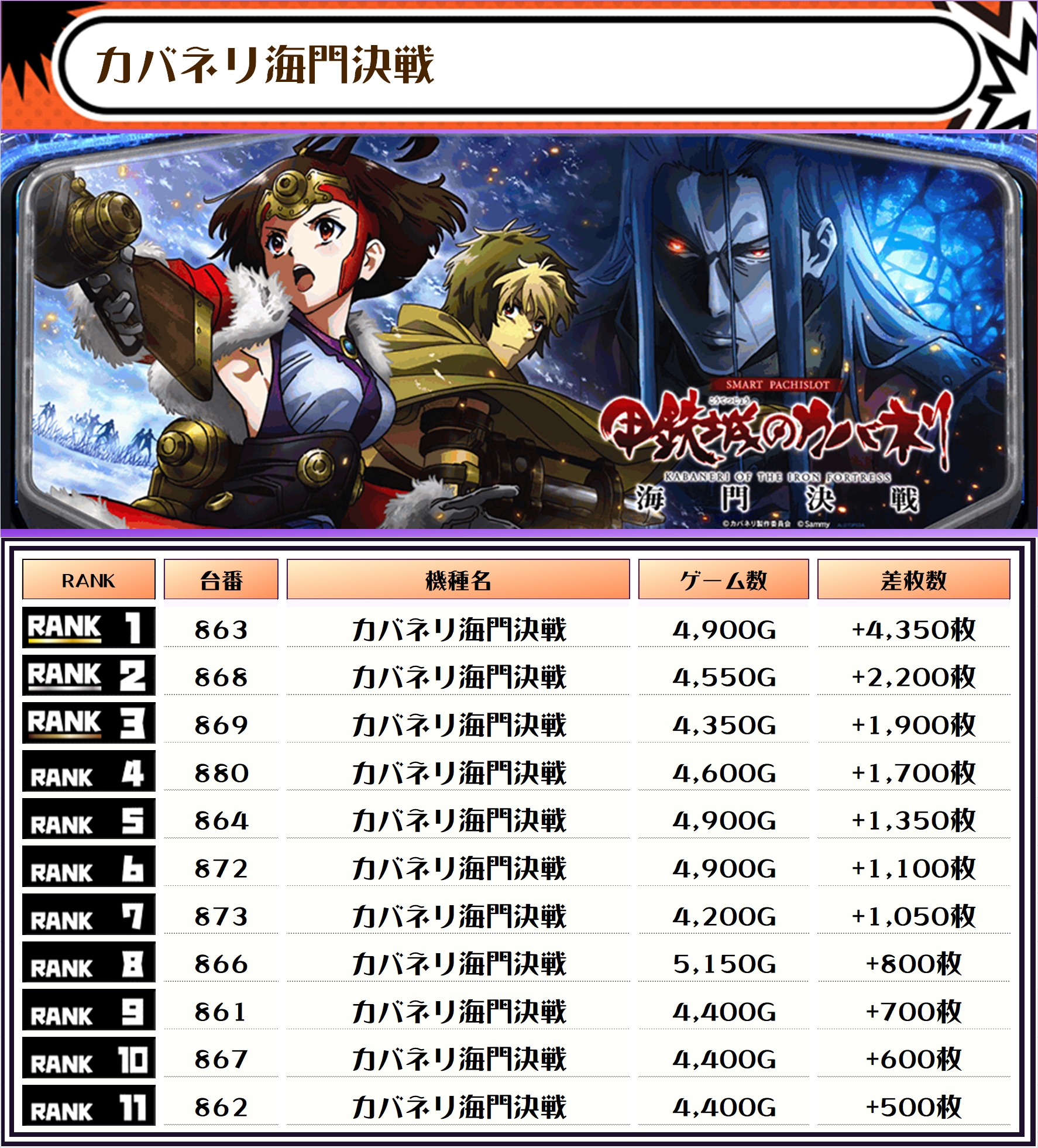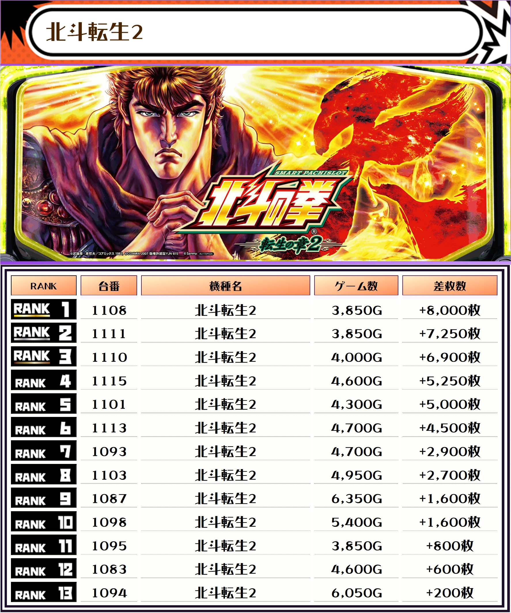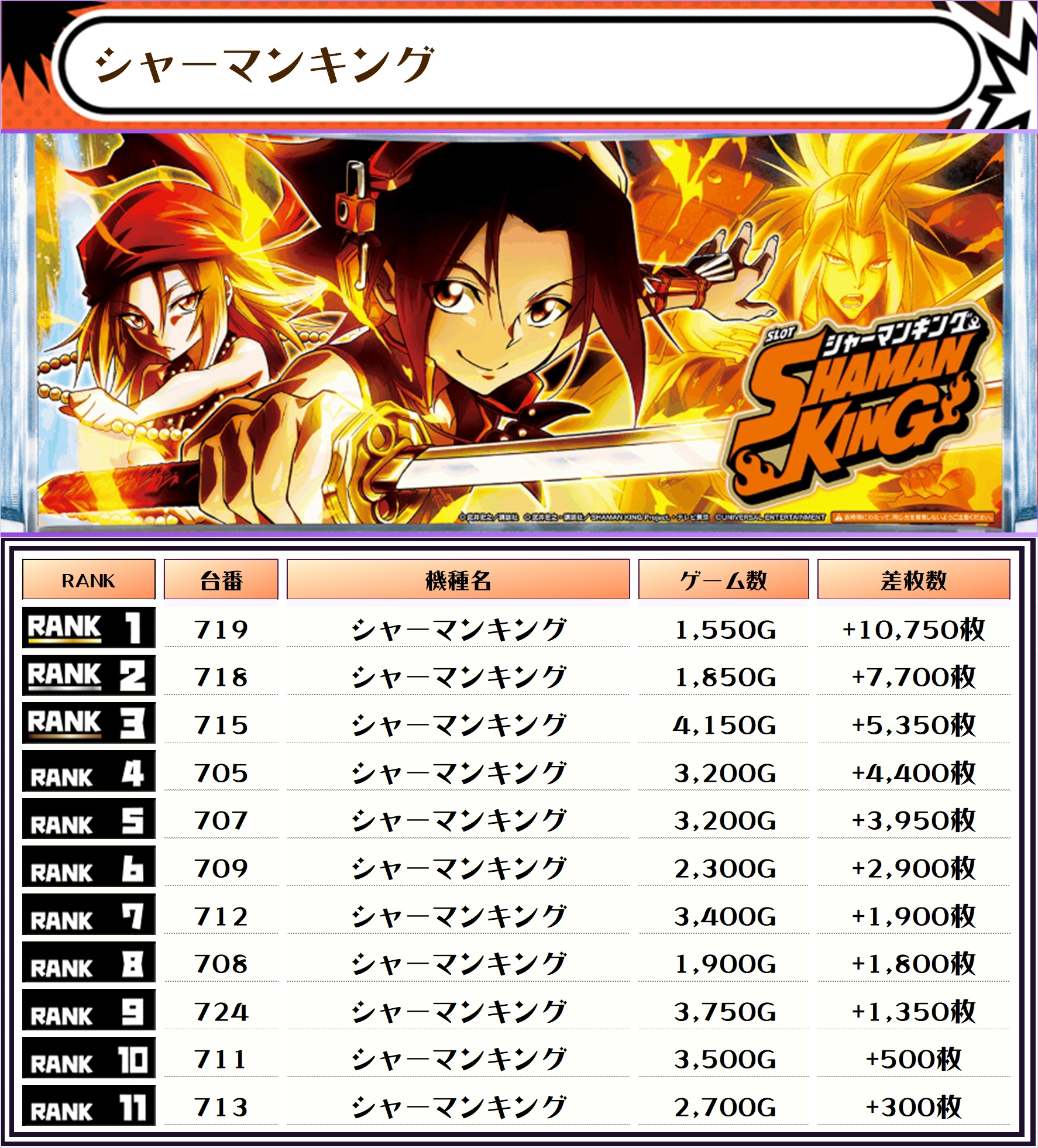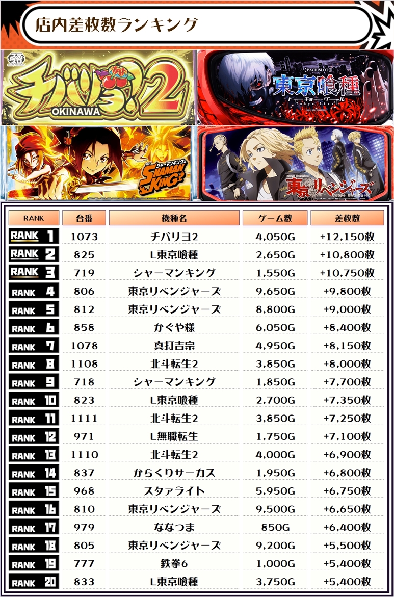続く2位には【L東京喰種・825番台】の+10,800枚、そして3位は【シャーマンキング・719番台】の+10,750枚がランクインですっ🏆🏆🏆