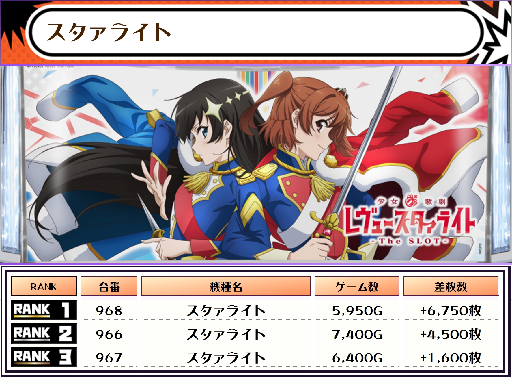 特に、東京リベンジャーズ・スタァライトの2機種が勝率が高かったですね🏆