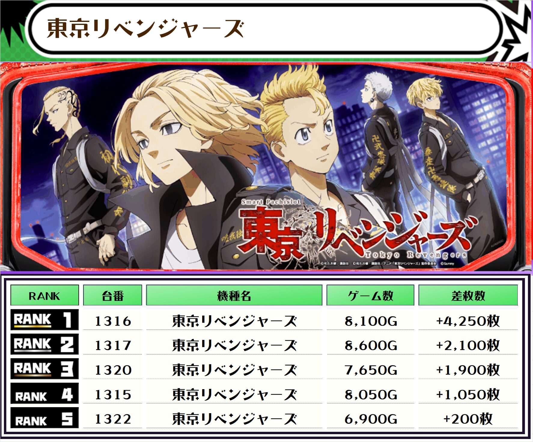 東京リベンジャーズ、沖ドキBLACK、スマスロモンキーV、ゴージャグ3などにその傾向にあったようです!