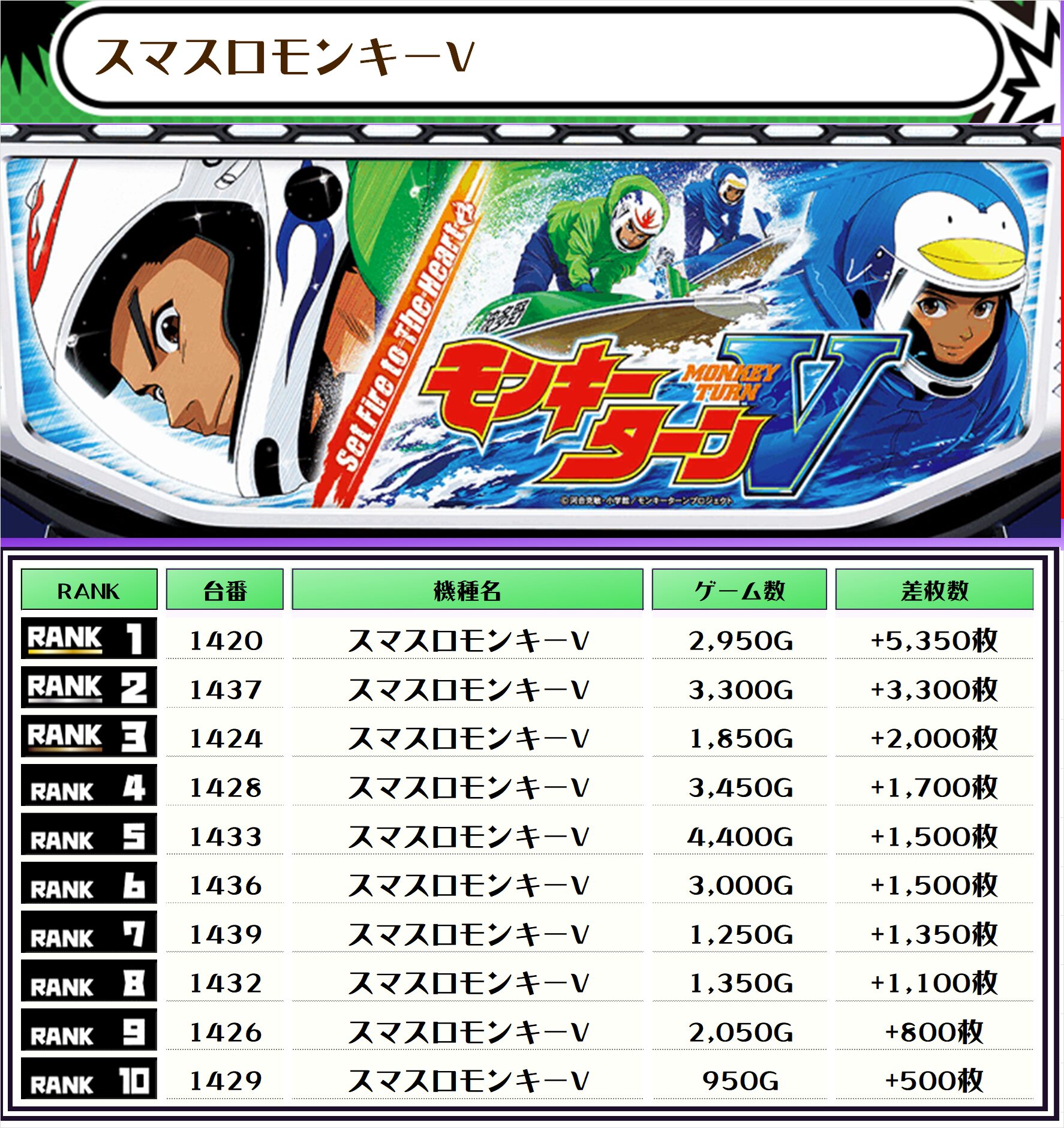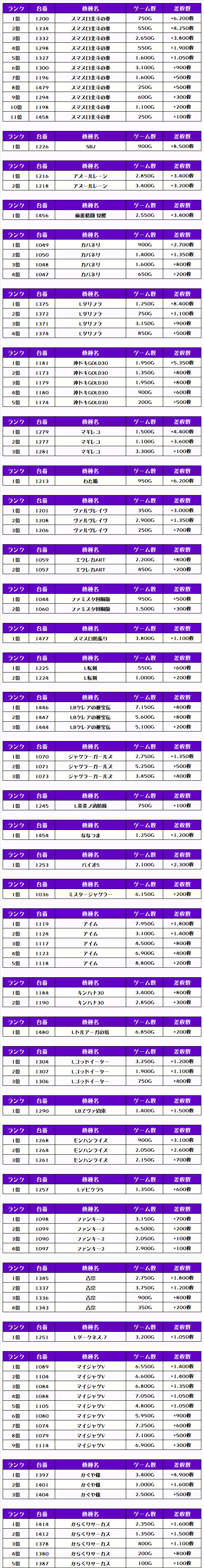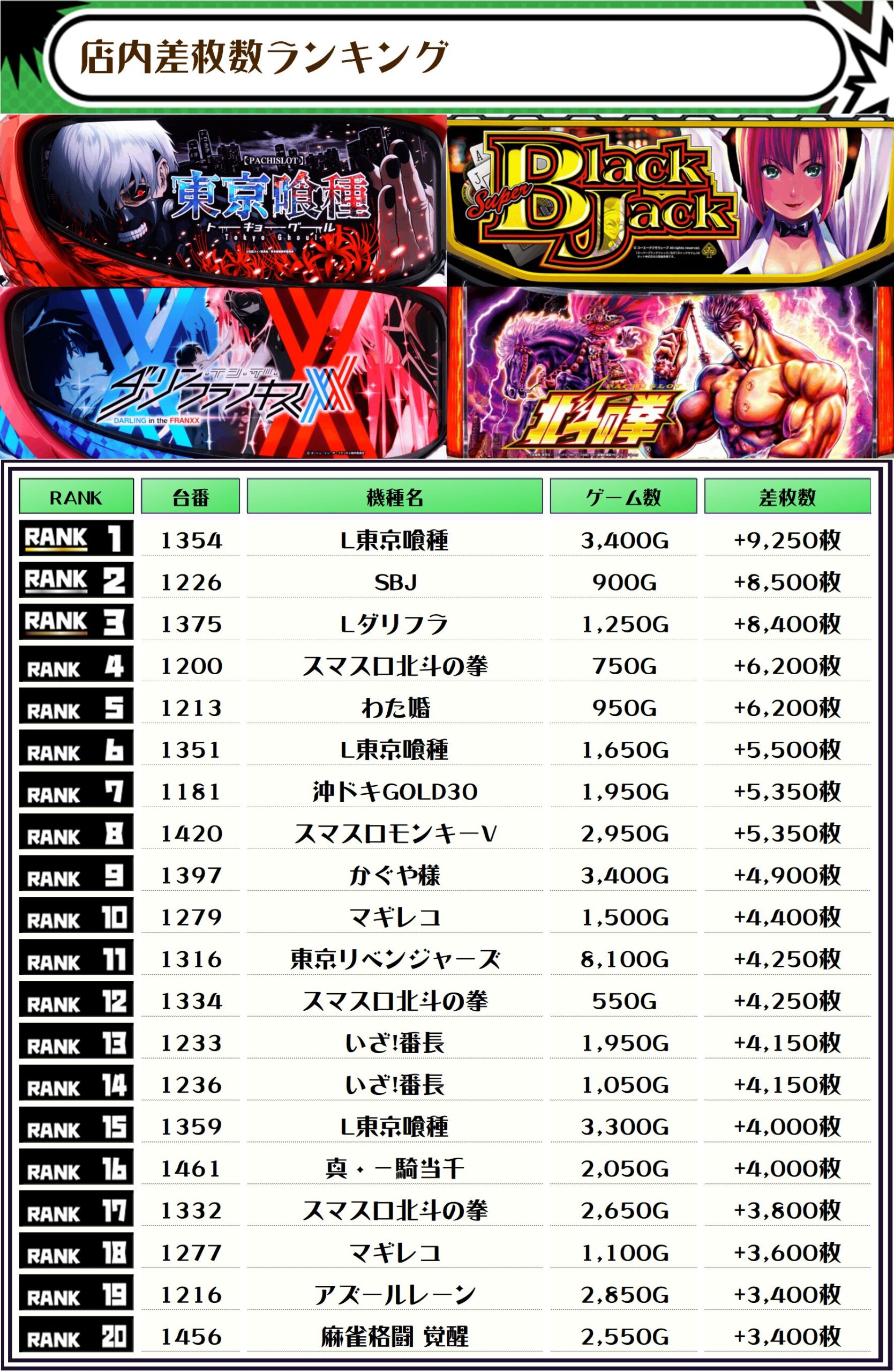 2位には【SBJ・1226番台】の+8,500枚、3位には【Lダリフラ・1375番台】の+8,400枚がランクインっ🏆🏆🏆🏆