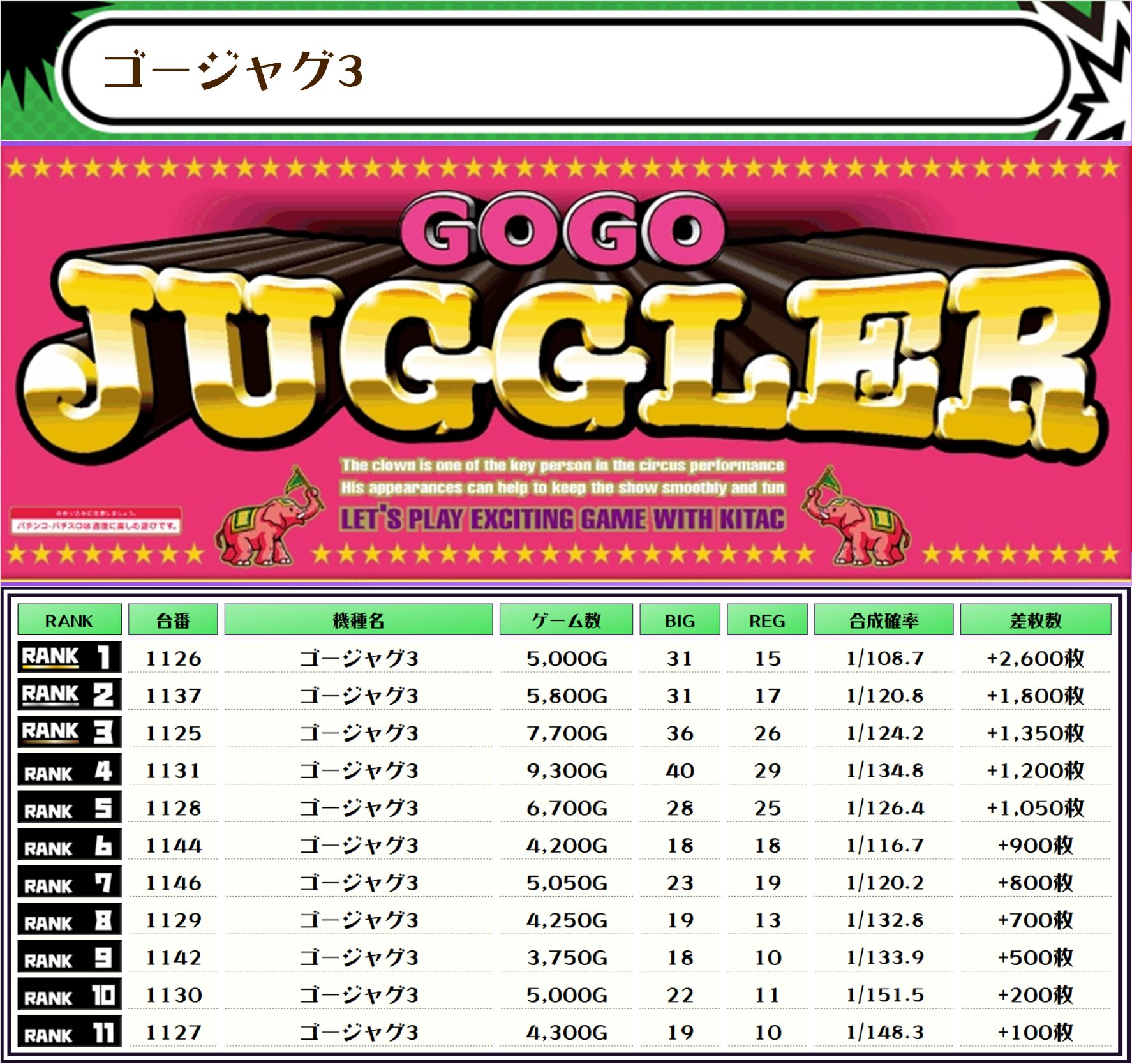 そして、この日全台を対象とした差枚ランキングがこちら👍