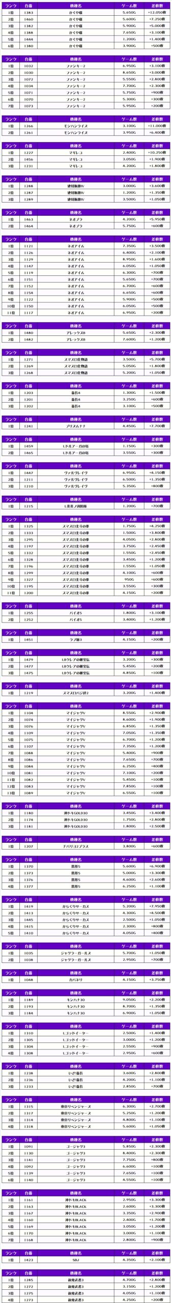 それでは、この日の【機種別差枚ランキング】を見ていこうっ❗️