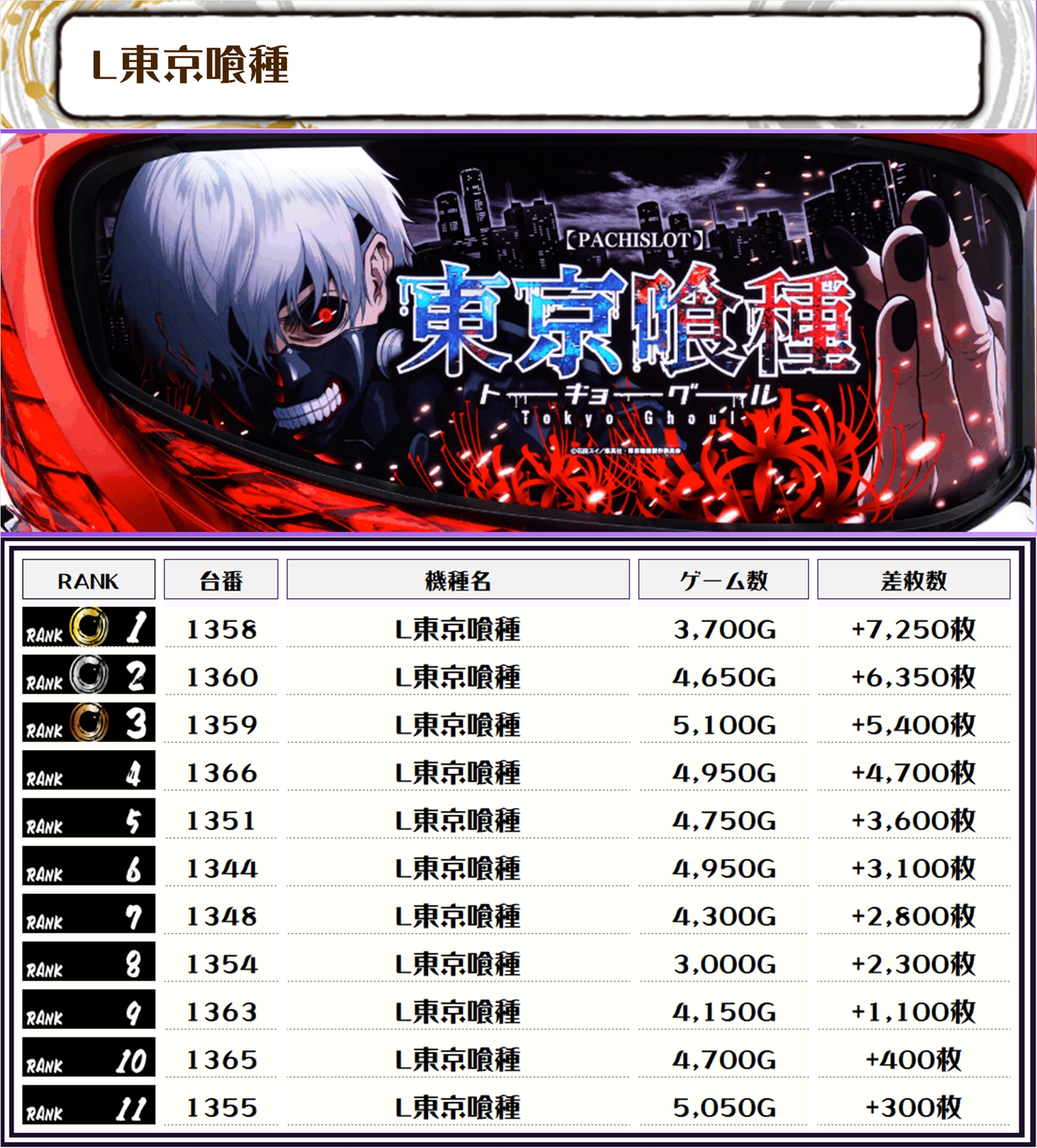 エウレカARTとヴァルヴレイヴはどちらも3台中2台が差枚でプラス、どれもフル稼働という素晴らしい挙動でした。そしてヴヴヴ2やL東京喰種もかなりの勝率で圧巻の結果を見せてくれました🔎
