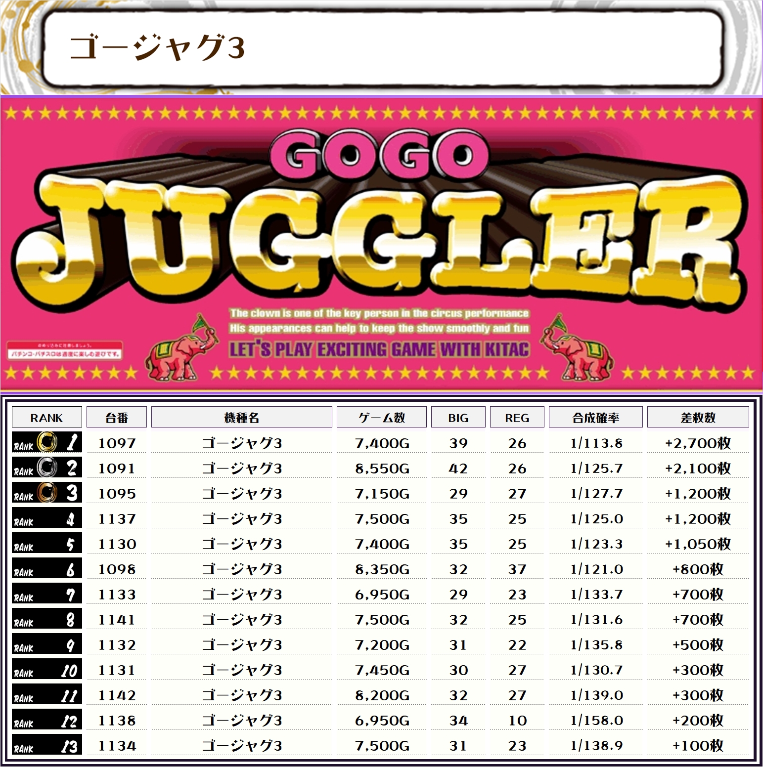 そして今回のランキングは、ほとんどが6000枚オーバーで埋め尽くされる…という非常にハイレベルな結果に👍