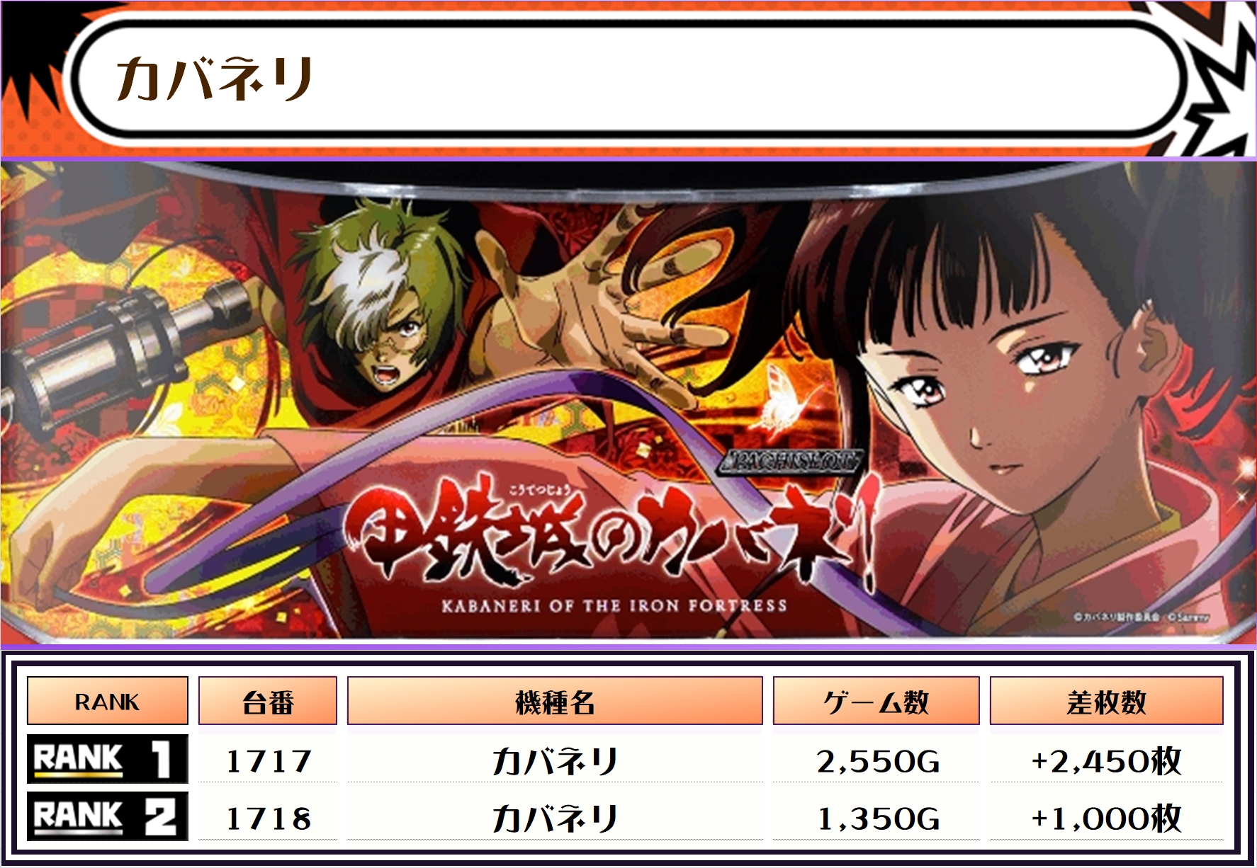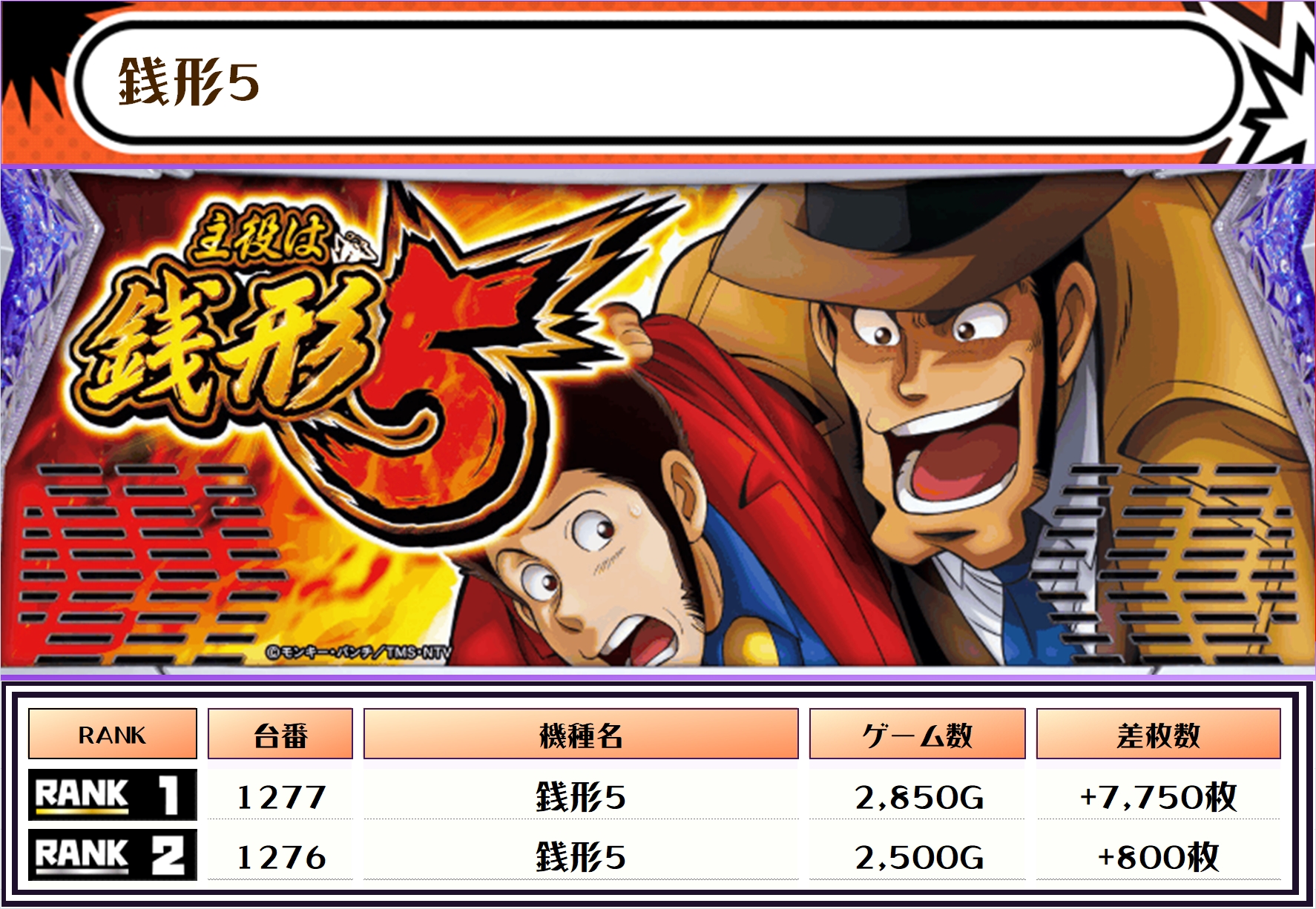 続く2位には【L東京喰種・1367番台】の+9,300枚、3位には【銭形5・1277番台】の+7,750枚がランクインっ🏆🏆🏆🏆