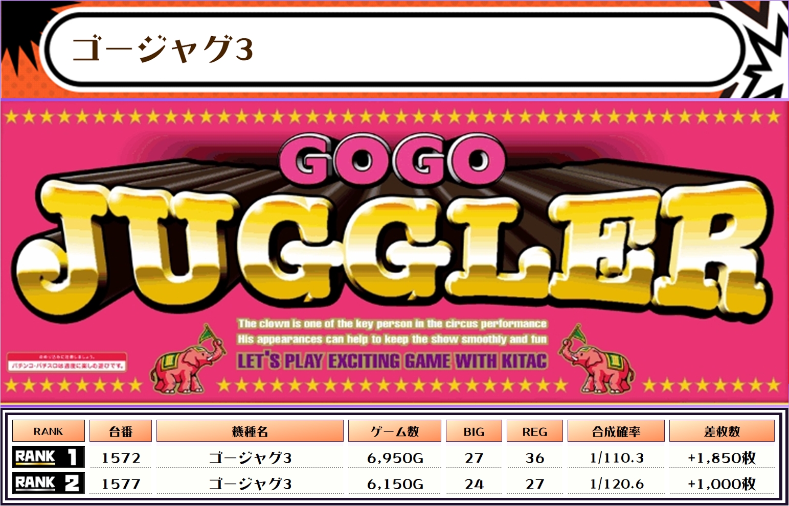 ゴージャグ3は打ち込みが少なく不発で終わった台が多かったのは残念だったな!!