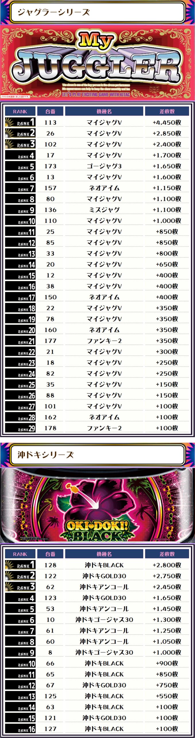 それでは、この日の【機種別差枚ランキング】を見ていきましょう❗️