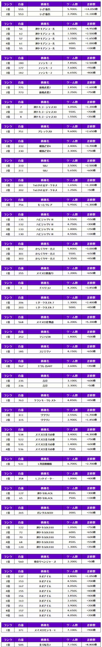 全体のTOP差枚は【いざ!番長・555番台】で+14,050枚っ❗️