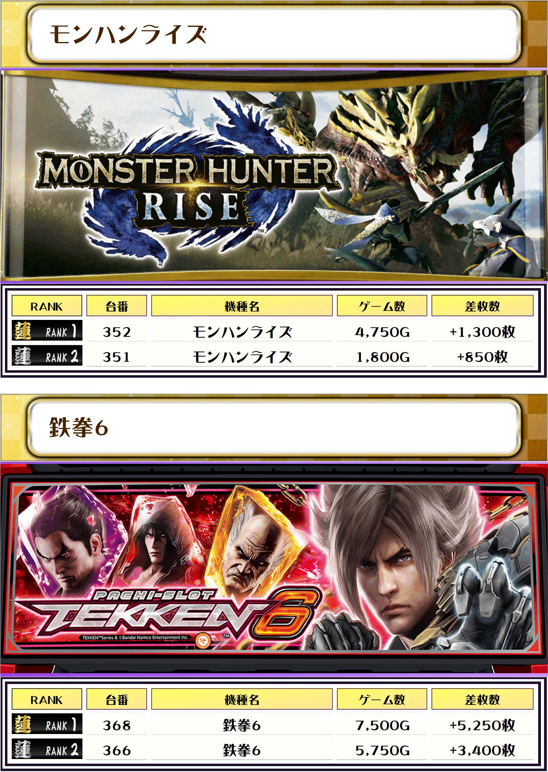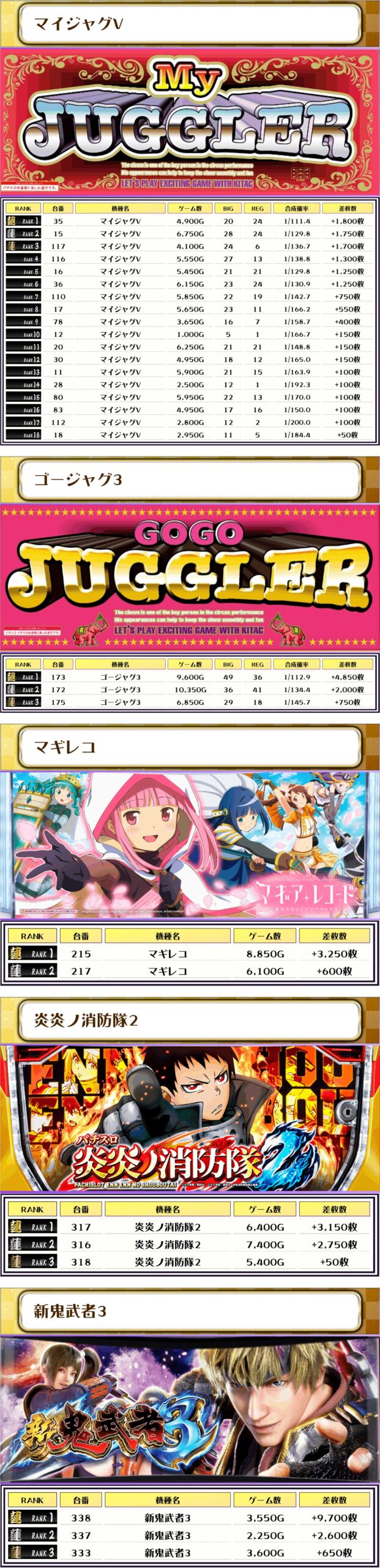 続く2位には【新鬼武者3・338番台】の+9,700枚、そして3位には【北斗転生2・505番台】の+8,800枚がランクインですっ❗️