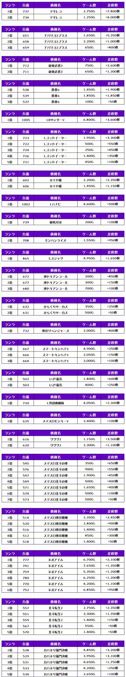 それでは、この日の【機種別差枚ランキング】を見ていきましょう❗️