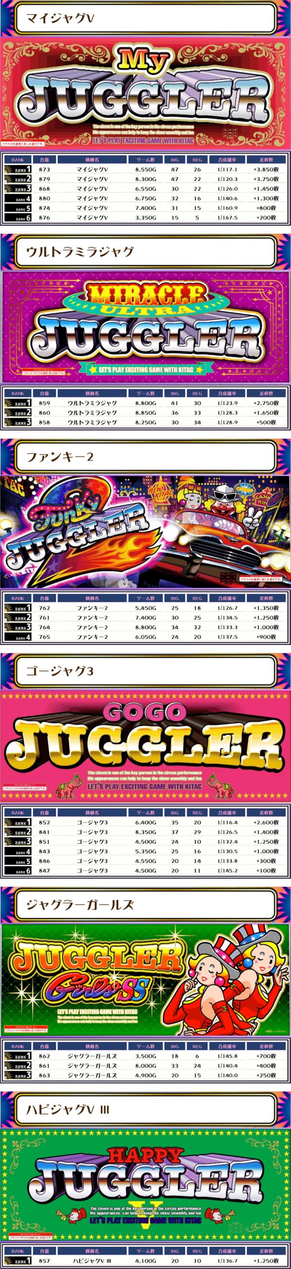 また、マイジャグⅤとゴージャグ3には優秀台が数多く用意されていたことがデータから窺えます🔍