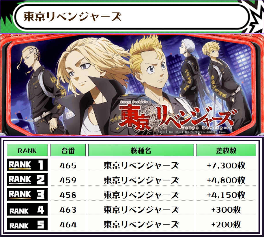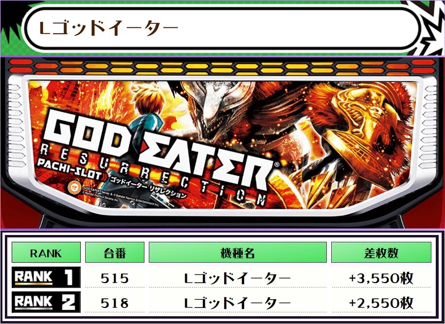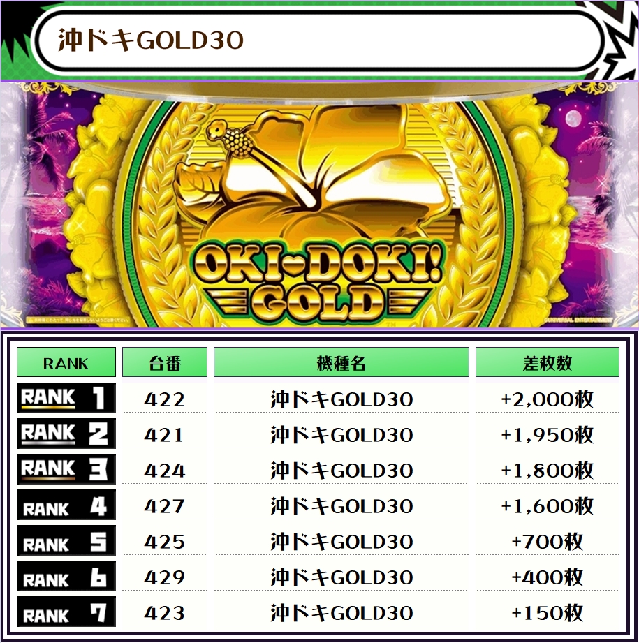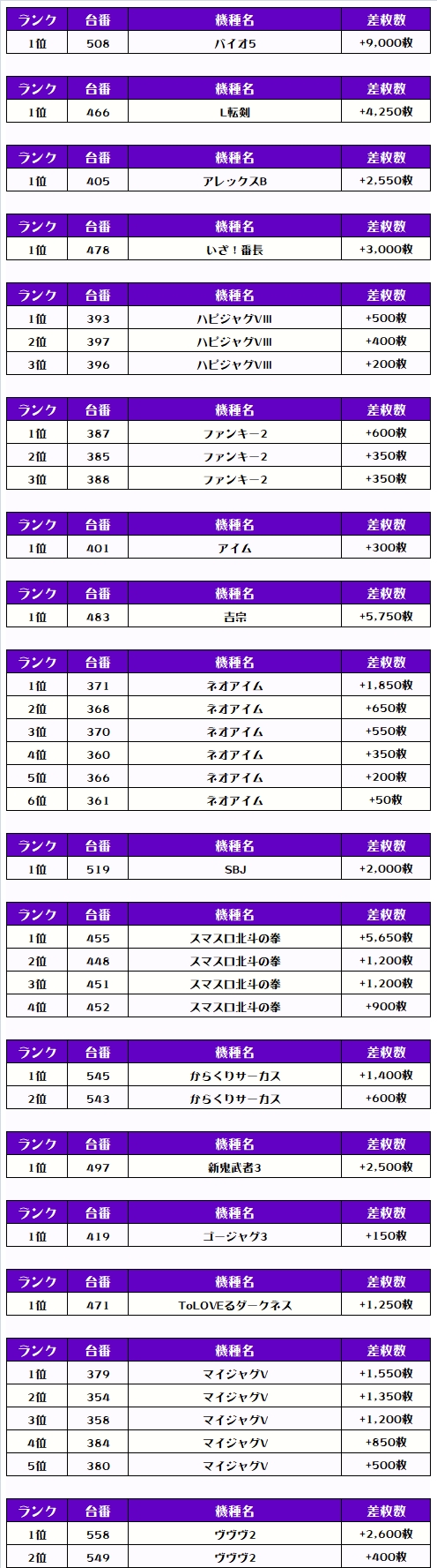それでは、この日の【機種別差枚ランキング】を見ていくぜっ❗️