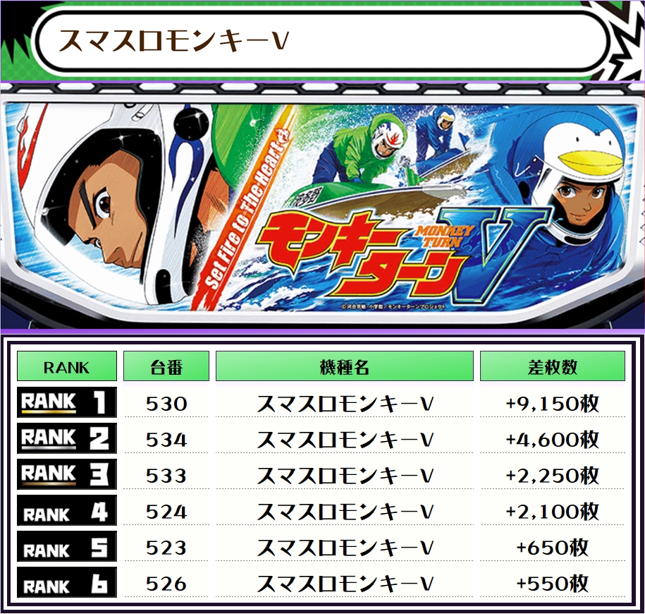 2位には【スマスロモンキーV・530番台】の+9,150枚、そして3位には【東京リベンジャーズ・462番台】の+8,650枚がランクインですっ✨