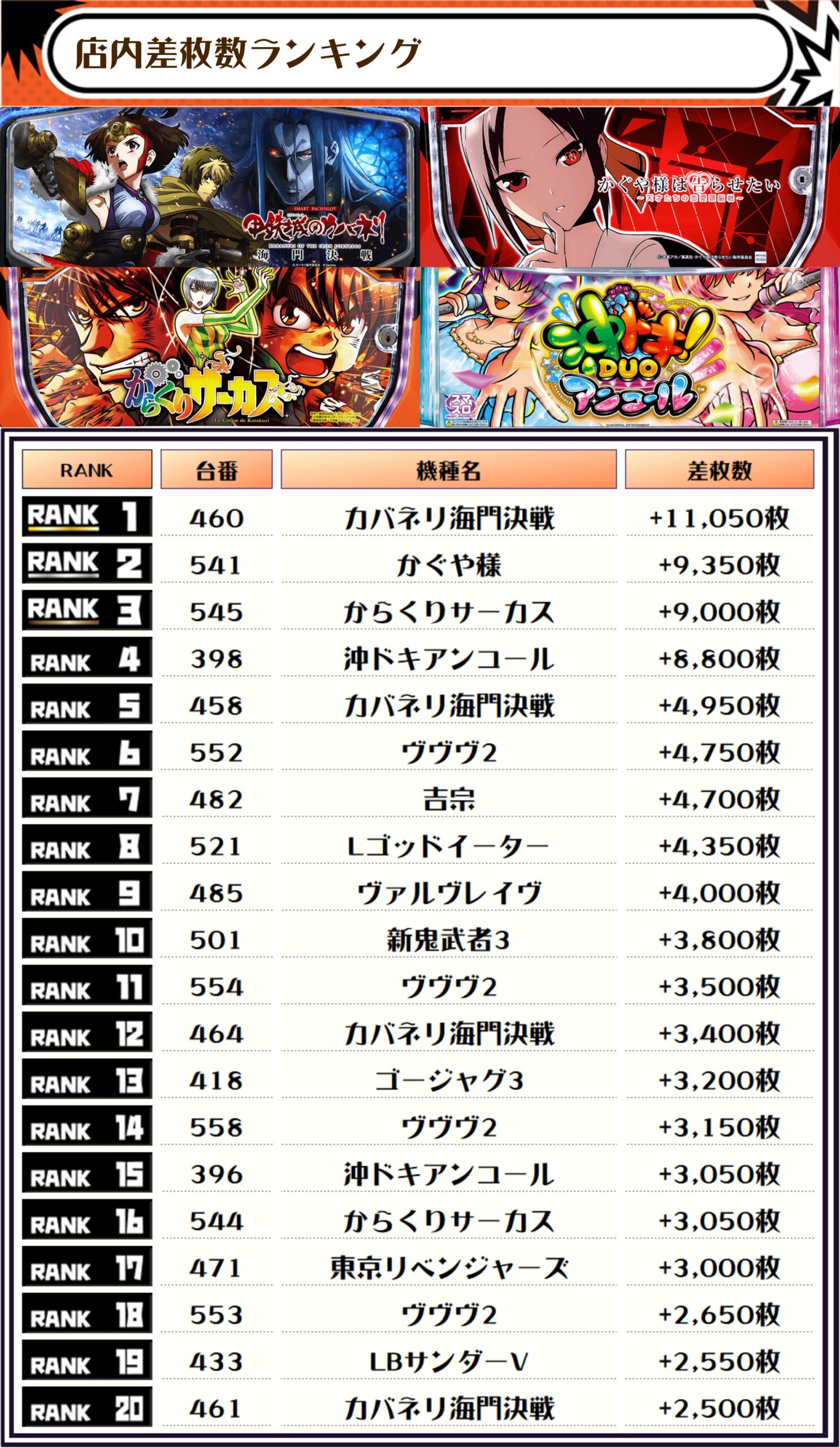 それでは【機種別差枚ランキング】をチェックしていきましょう💥