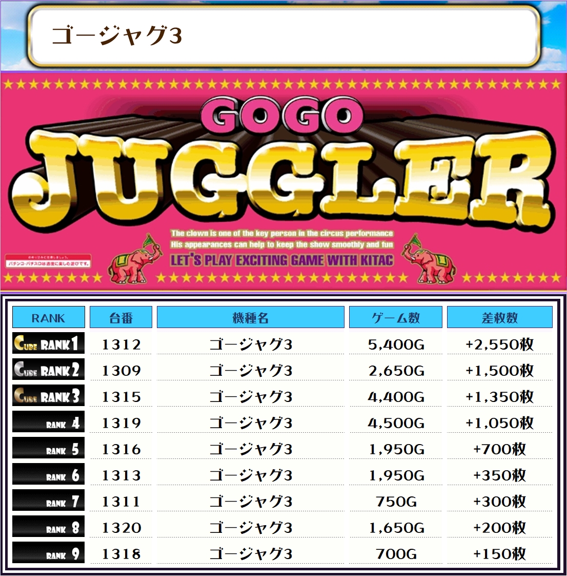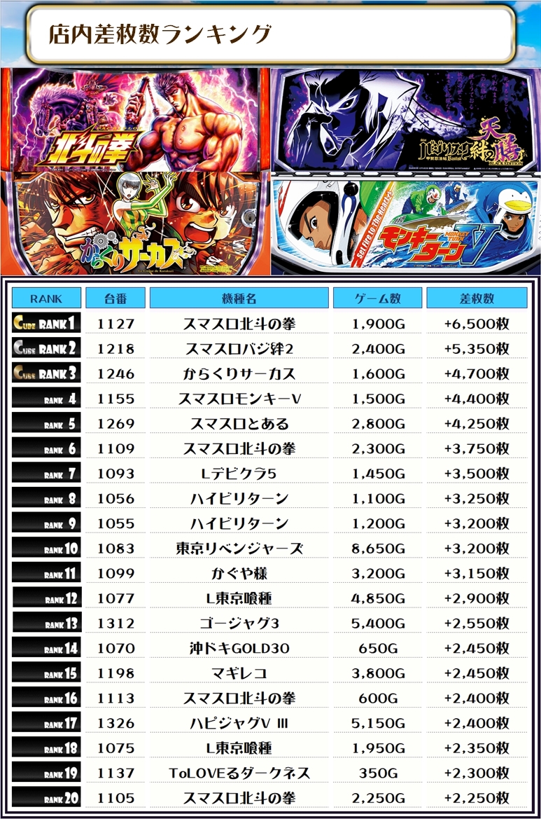 最後に、この日の店内差枚ランキングをご覧ください❗️