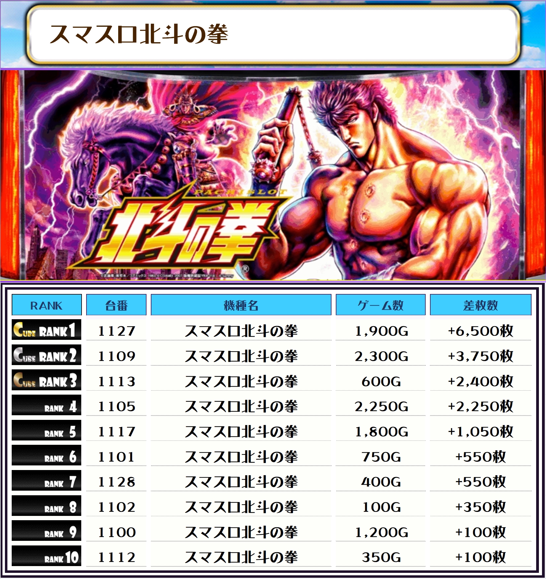 この日、全体の差枚トップに輝いたのは【スマスロ北斗の拳・1127番台】で+6,500枚👍‼️