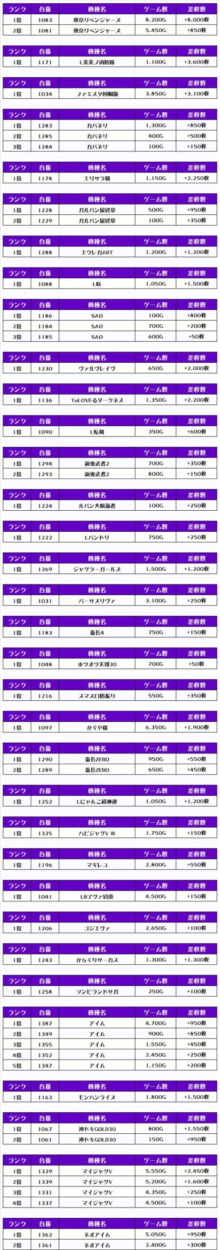 それでは早速、機種別差枚ランキングをチェックするぞ❗️
