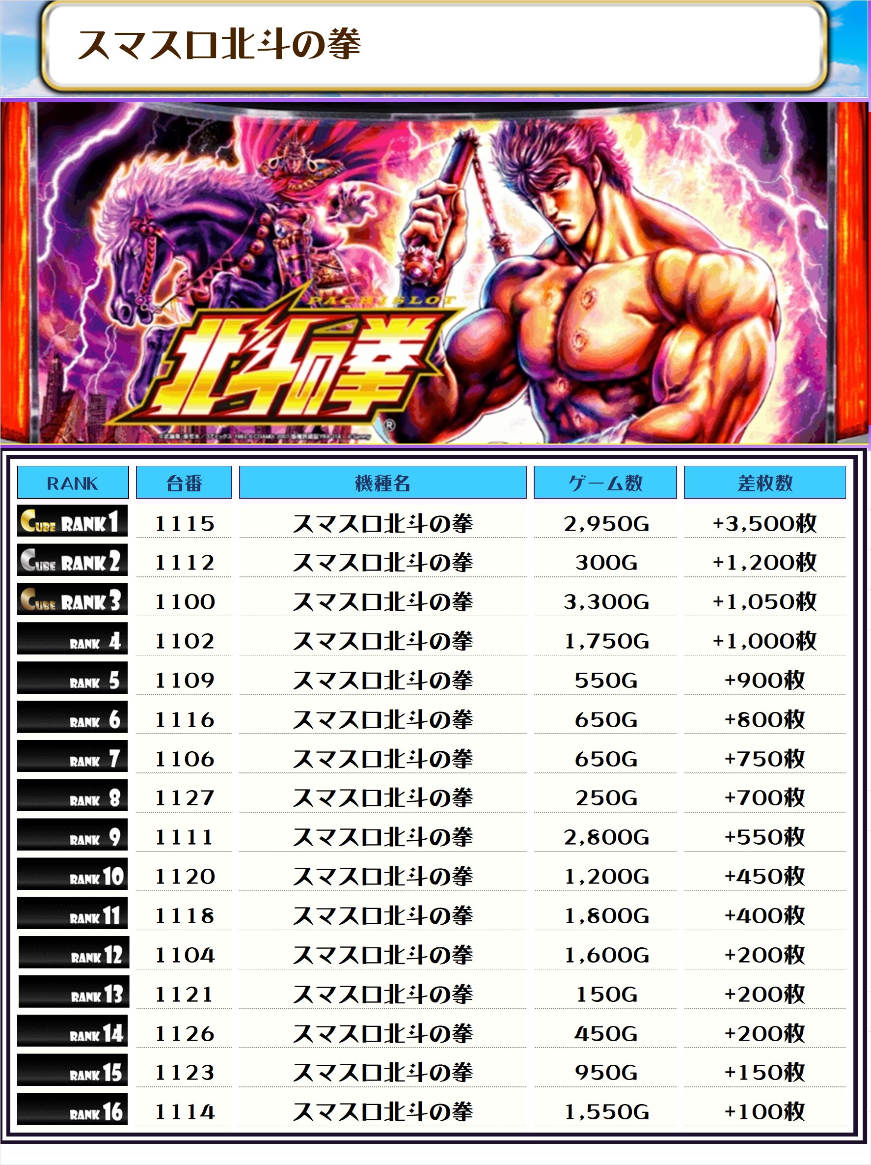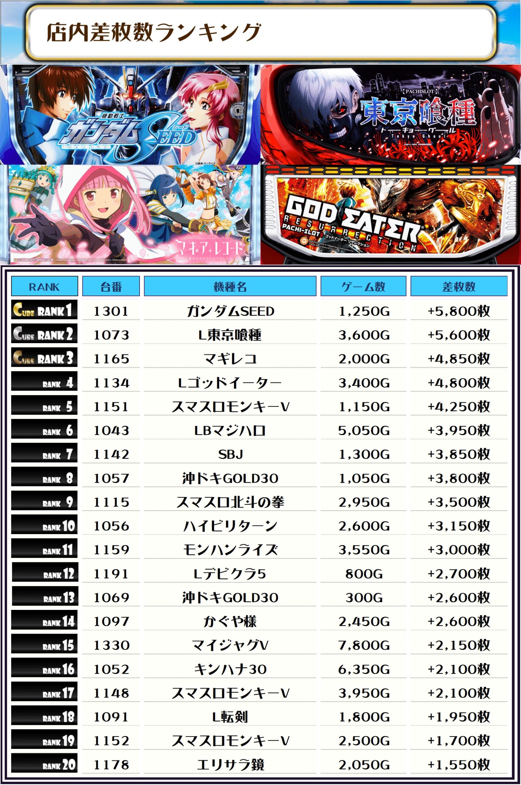 最後に、この日の店内差枚ランキングをご覧ください❗️
