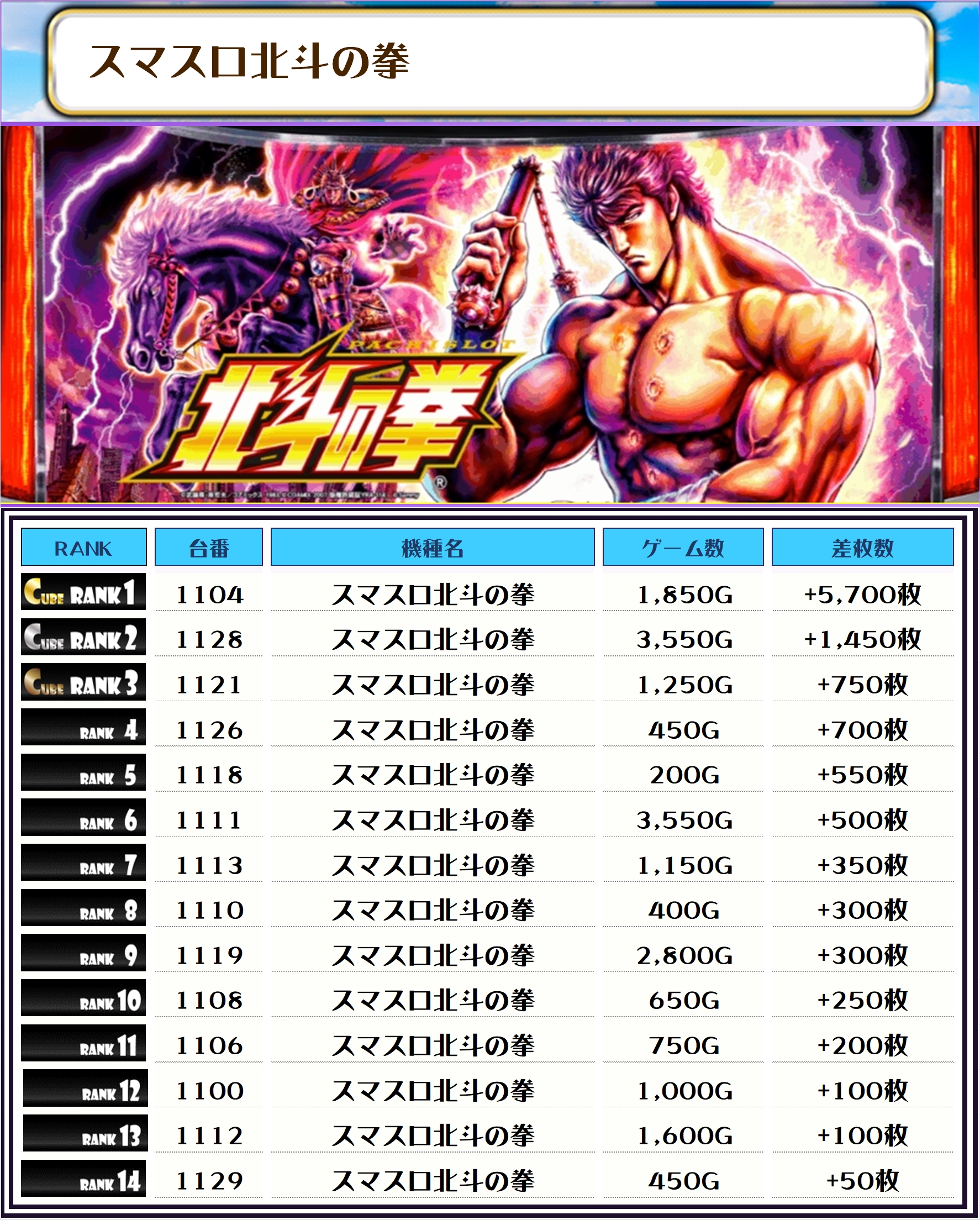 2位には【Lダリフラ・1197番台】の+6,300枚、そして3位には【スマスロ北斗の拳・1104番台】の+5,700枚がランクインっ🏆🏆🏆