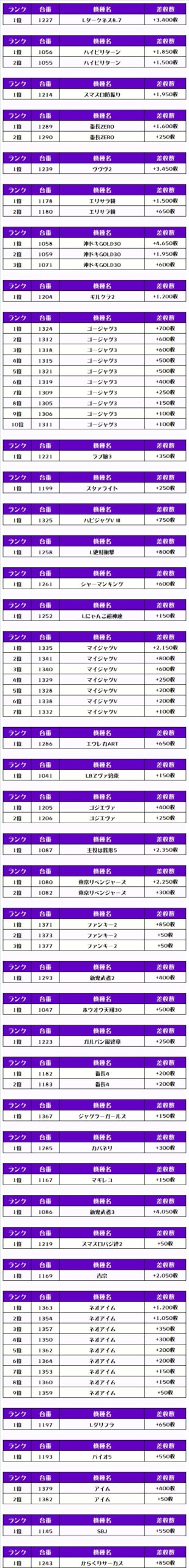 それでは早速、機種別差枚ランキングをチェックするぞ❗️
