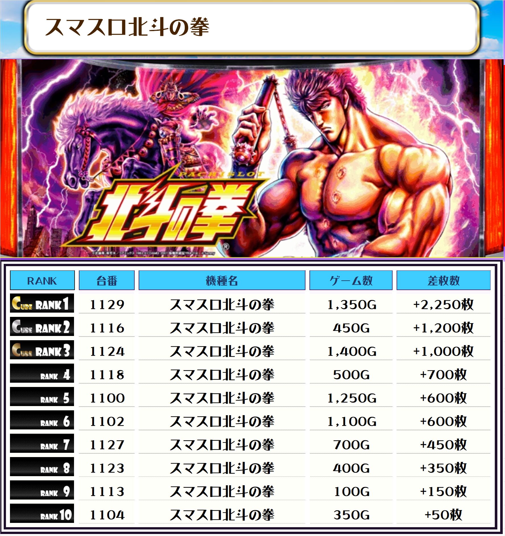最後に、この日の店内差枚ランキングをご覧ください❗️
