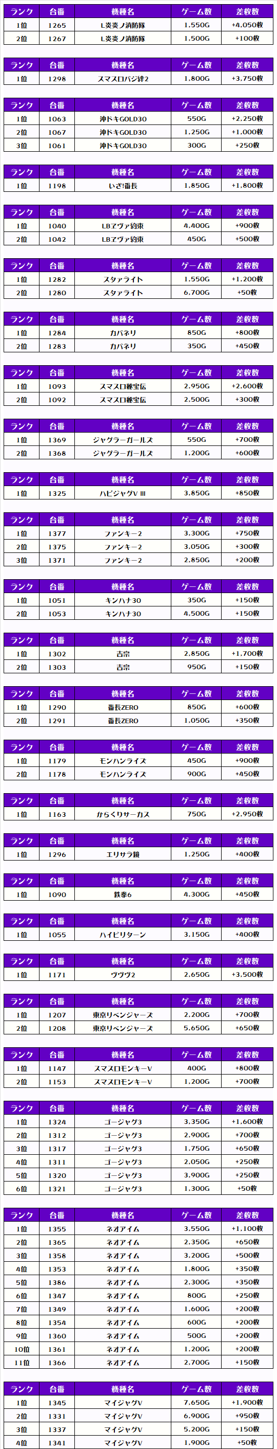 それでは早速、機種別差枚ランキングをチェックするでやんすっ❗️