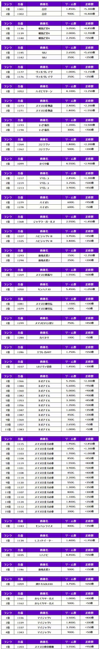 それでは早速、機種別差枚ランキングをチェックするでやんすっ❗️