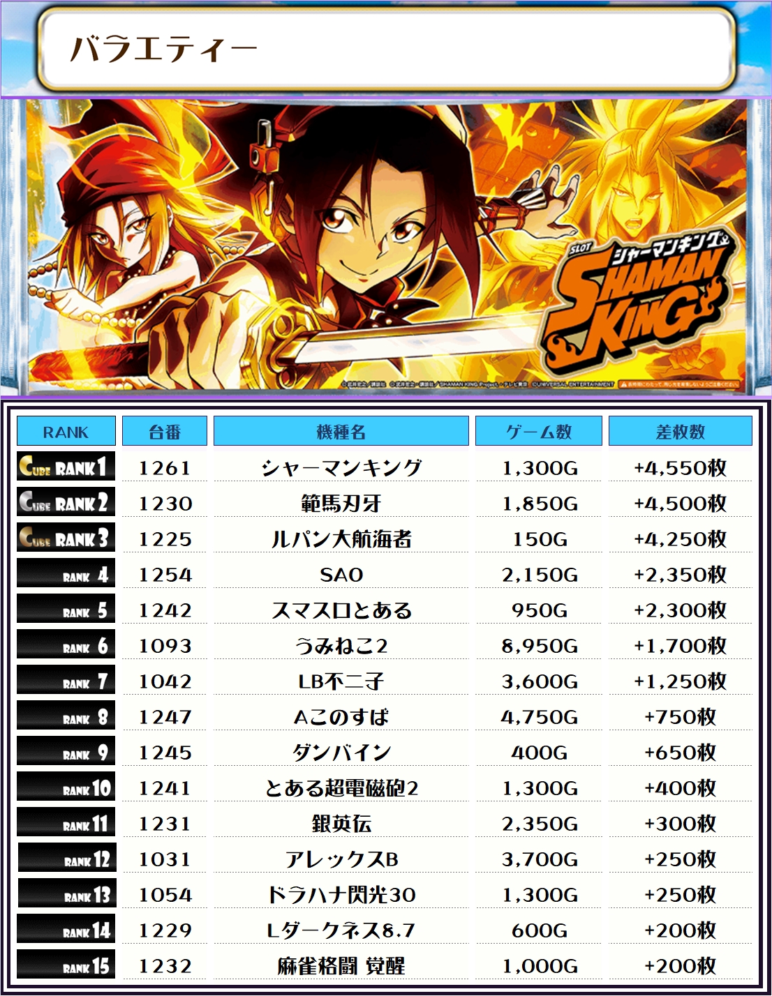 最後に、この日の店内差枚ランキングをご覧ください❗️