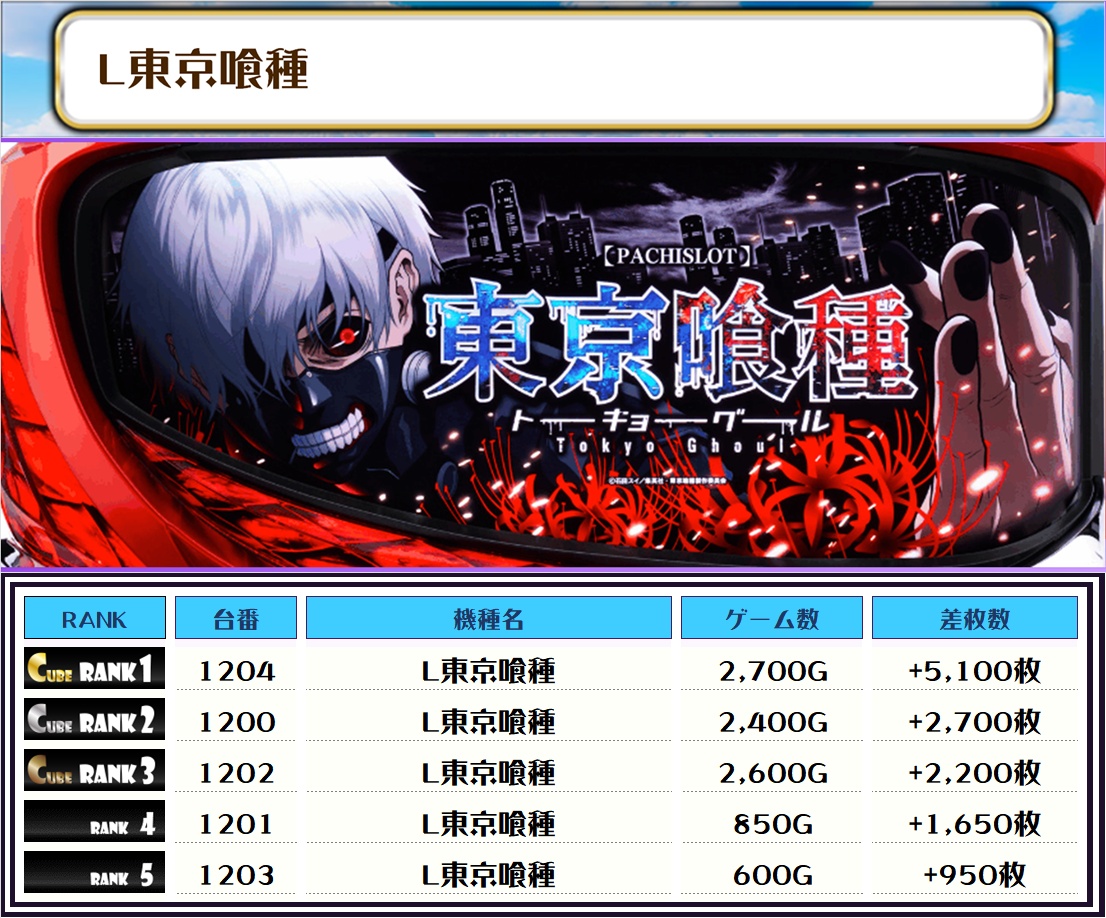 私が目を付けたのはL東京喰種・化物語・吉宗・炎炎ノ消防隊2の4機種だな👀
