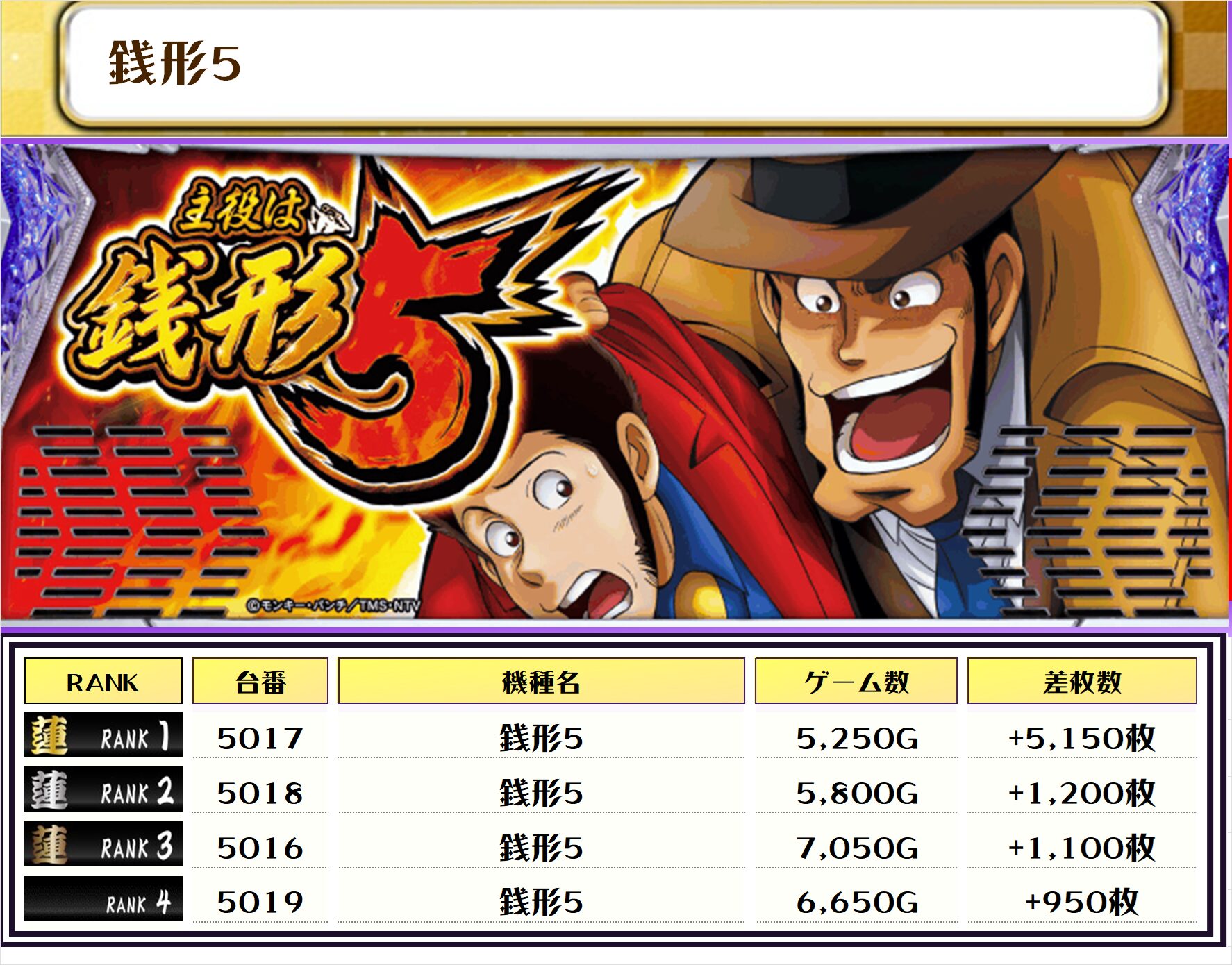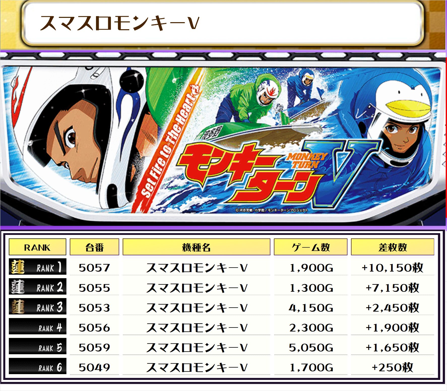 続く2位には【スマスロモンキーV・5057番台】の+10,150枚、そして3位には【スマスロ防振り・5325番台】の+8,750枚がランクインっ🏆🏆🏆