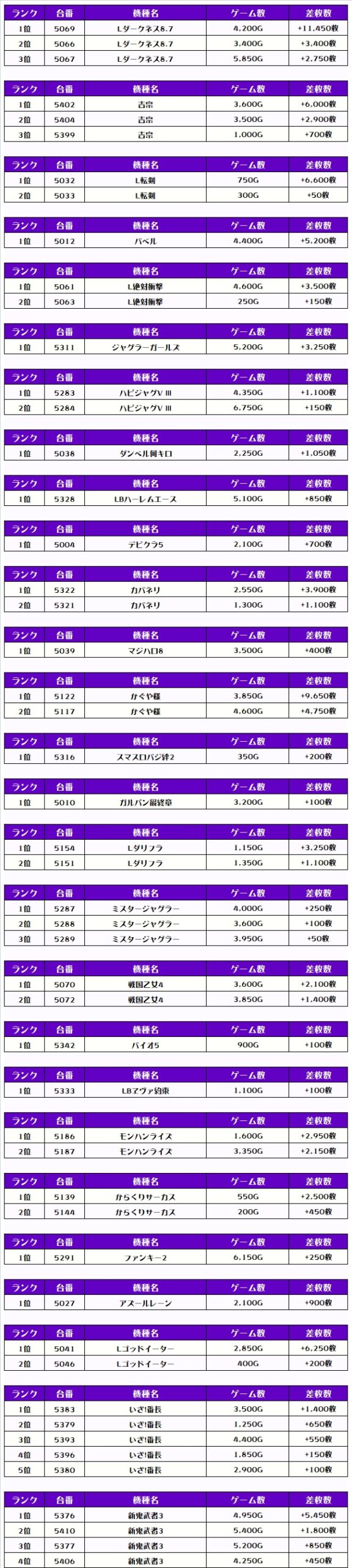それでは、機種別差枚数ランキングをチェックしましょう❗️