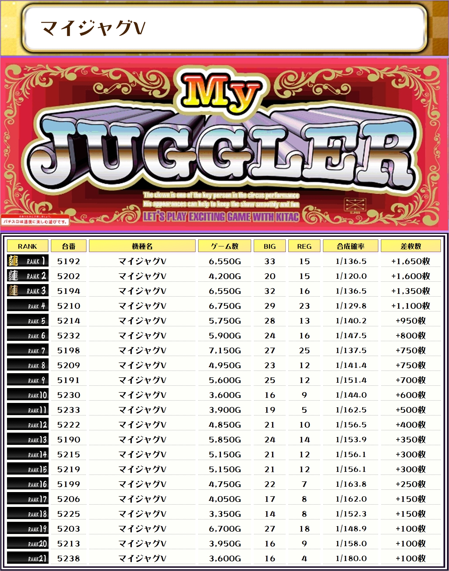 TOP3の内2台が万枚オーバー、さらにランキング14位まで5000枚台が並びました🔥🔥🔥