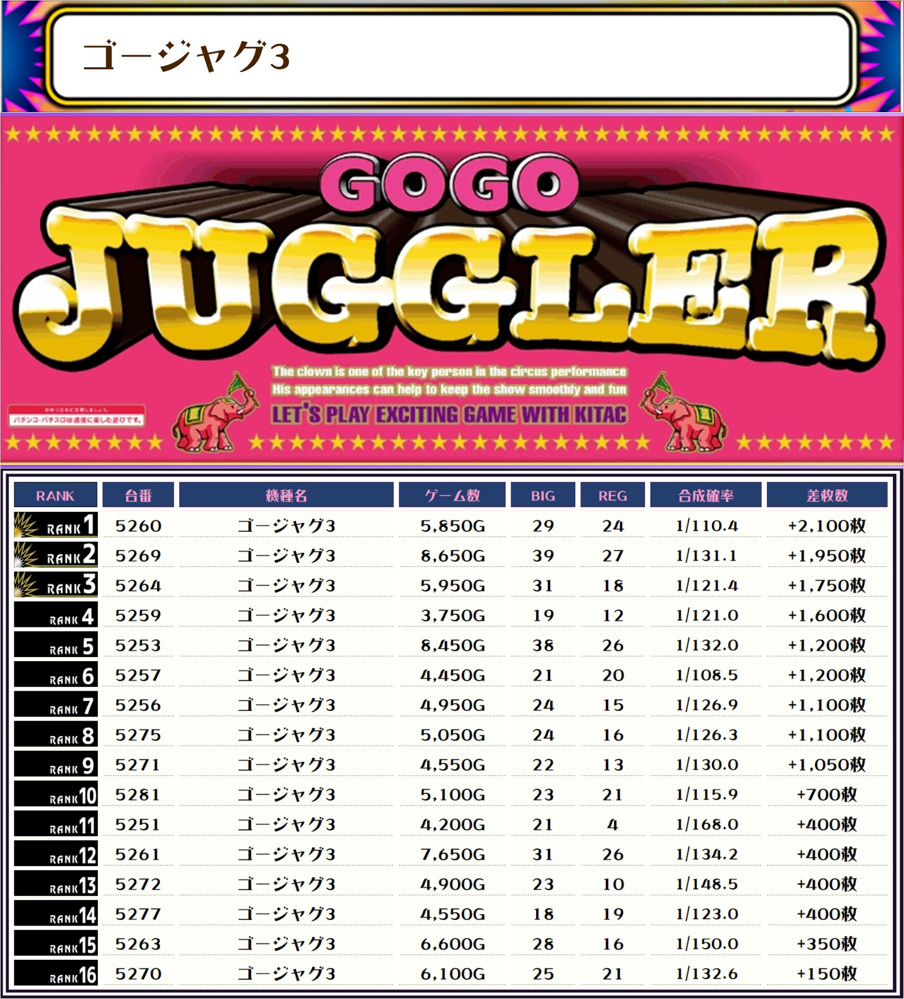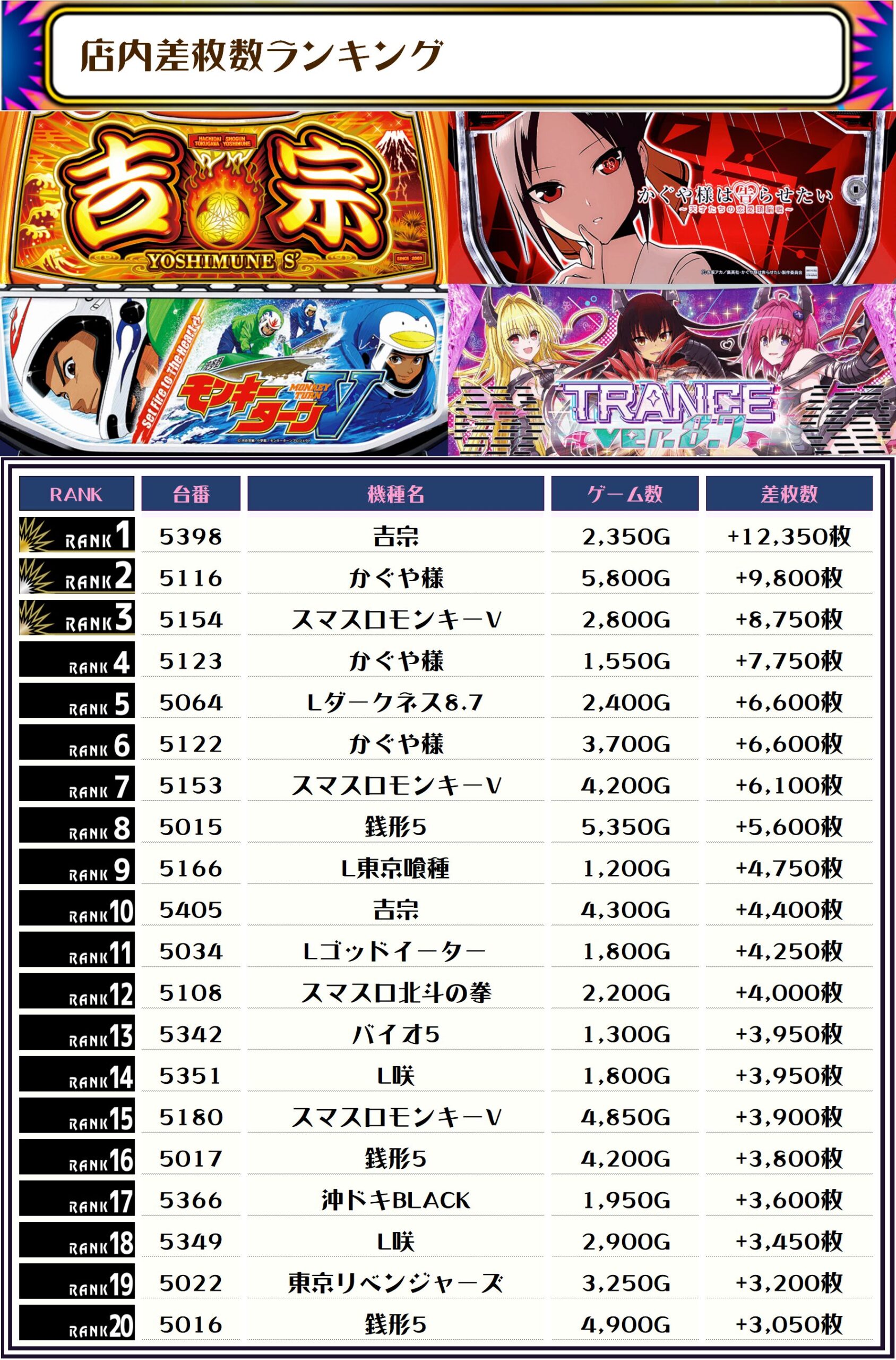 それでは、機種別差枚数ランキングをチェックしましょう❗️