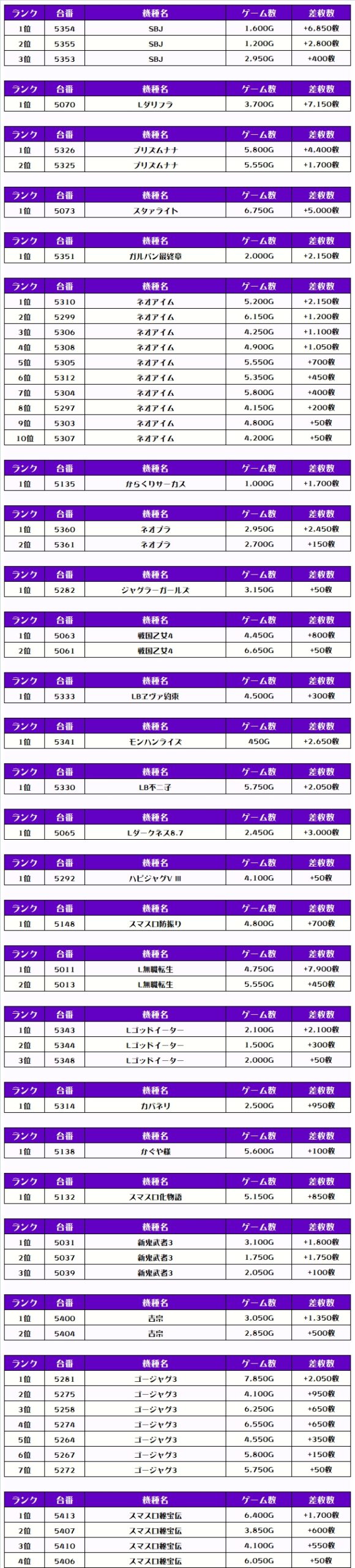 それでは、機種別差枚数ランキングをチェックしましょう❗️